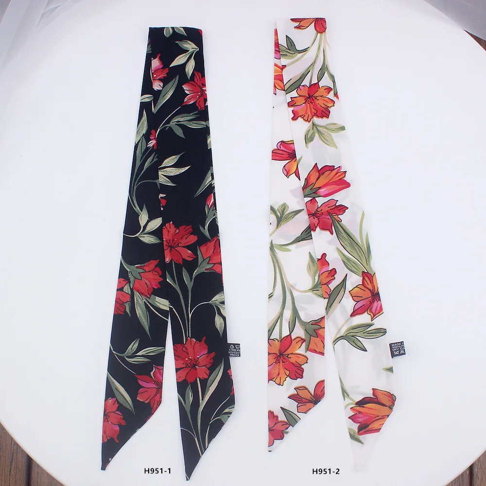 Шарф женский Шелковый узкий, с цветочным принтом, H951, 2019