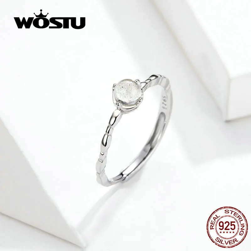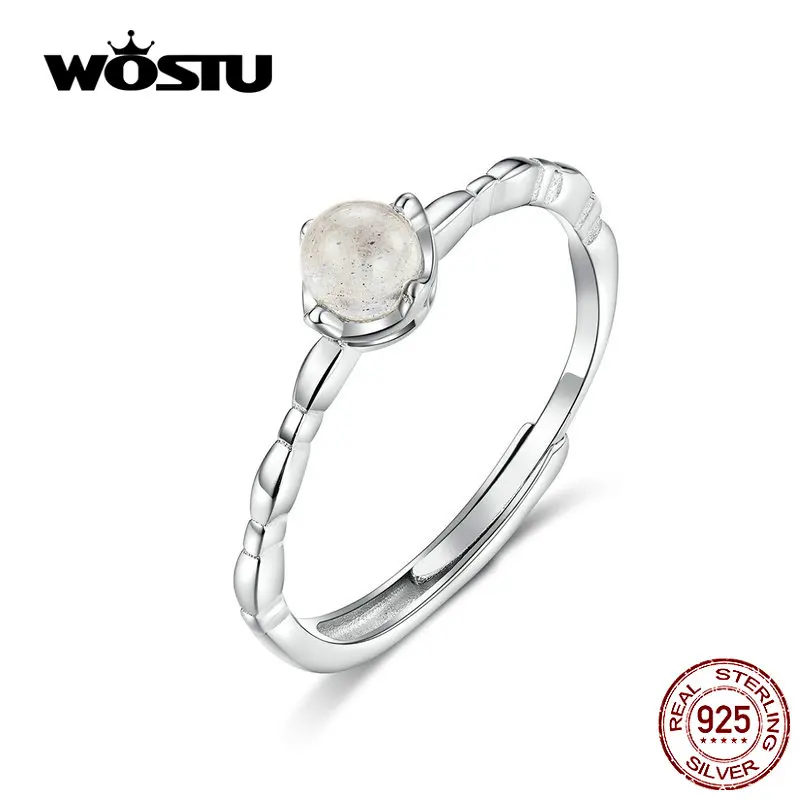 WOSTU Moonstone уникальное кольцо из 100% стерлингового серебра 925 пробы, регулируемое модное кольцо из камня для женщин, обручальное ювелирное изделие для свадьбы CQR536
