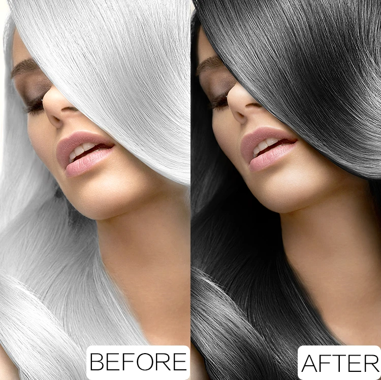 1. Растительная формула 2. Чистка кожи головы 3. Легко и быстро 4. Мягкая 5. Держать 6. Приятный запах 7. Всего за 5 минут, от белого и серого волос до черного 8. Только для волос, а не для кожи головы