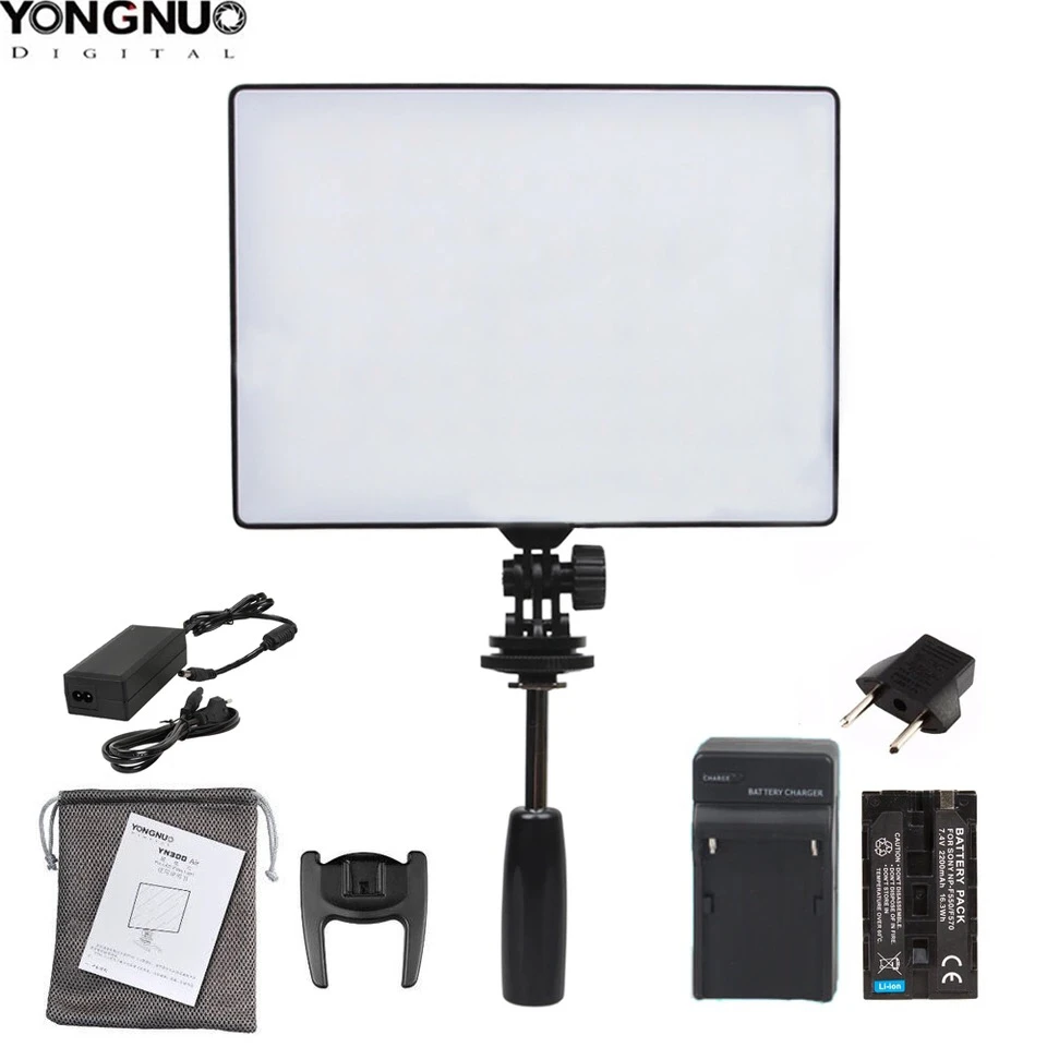 Светодиодный светильник YONGNUO YN300 Air YN-300 Air Pro для камеры и видеосъемки, дополнительно с зарядным комплектом для аккумулятора, светильник для фотосъемки + адаптер питания переменного тока
