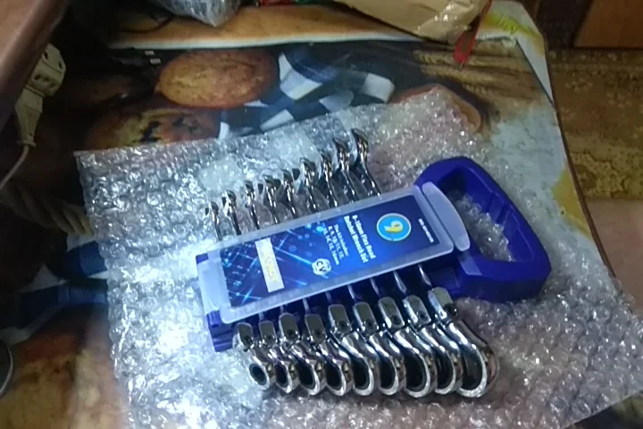 Товар пришёл в Краснодарский край за 5-6дней с доставкой из России. Всё ключи на месте. Есть небольшой люфток в шарнире на ключах порядка от 5-10 градусов, имею ввиду то место где соединяется сама трещотка с основанием ключа болтом под шестигранник. В остальном без нареканий, сделаны неплохо. В работе не. пробовал, но думаю будет нормально. Для нечастого использования пойдёт. Единственное не стоит трещотке давать большое усилие и будет работать