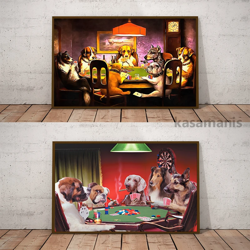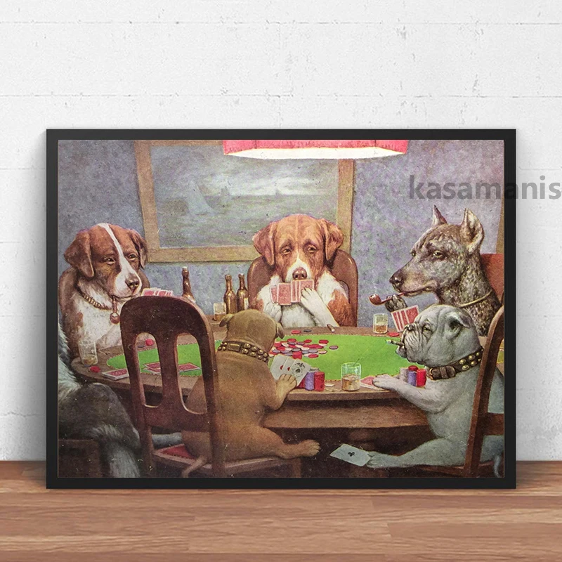 Собаки, играющие в покер, Забавный постер и печать, Картина Настенная, крутая собака, мопс в казино, художественная живопись на холсте для гостиной, домашнего декора