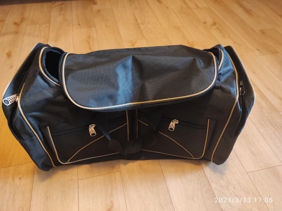 качество неплохое, правда нет ножек и уплотненного дна, да и длинный ремень не для такой большой сумки, карабины хлипкие