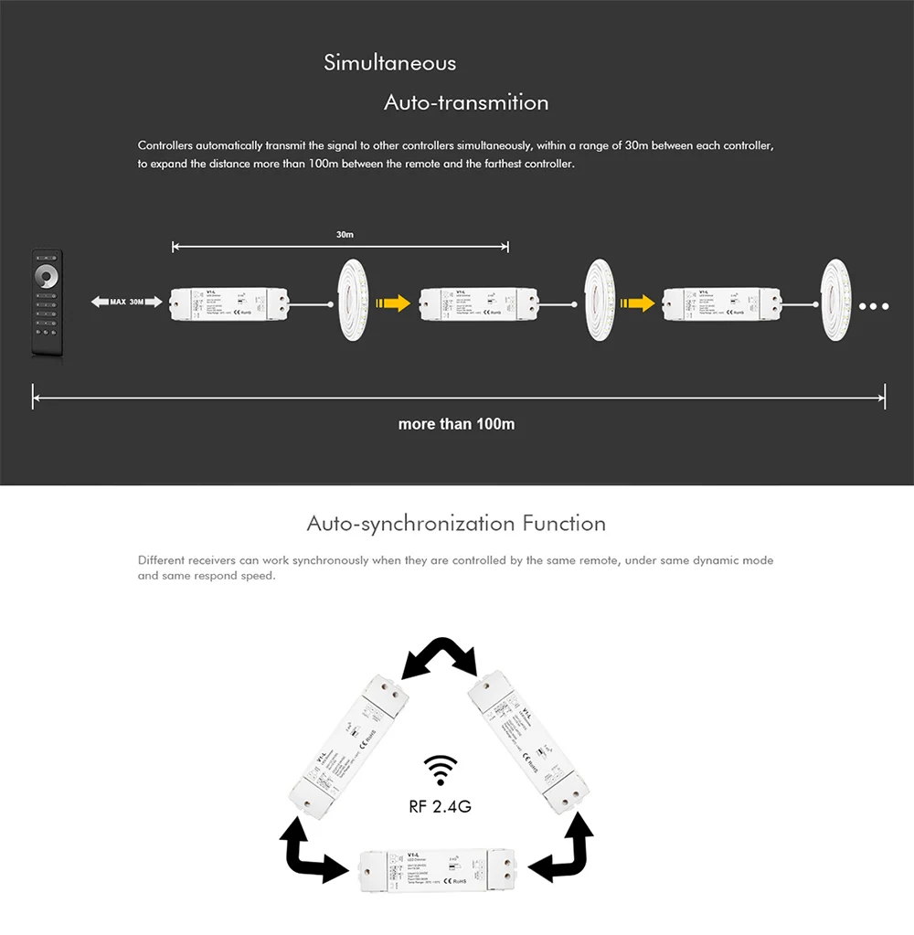 Новый 8 зон светодиодные полосы 12V24V 15A Выход RT8 Беспроводной R...