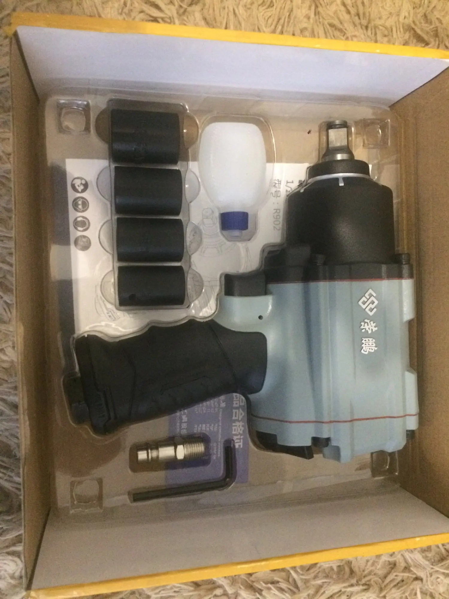 Заказ сделал с доставкой из России, просто гайковёрт. Продавец написал, что на складе в России товар закончился и он может его выслать из Китая за те же деньги, но набор, я согласился. Доставка в Тверскую из Китая 9 дней! Упаковано отлично! Кейс в фирменной коробке, с инструкцией, правда на китайском. Гайковёрт отличный! Закисшие колёсные болты на газелях и внедорожниках откручивает, правда не всегда, видимо надо бы ньютонометров побольше))) После затяжки на 2 режиме протяжка вручную не нужна. Из минусов: тяжеловат, головки крашеные, явно не ударные, чемодан внутри слегка побит, если прикрутить штуцер с маслобочонком в ложемент не ляжет! Великолепный гайковёрт за небольшую стоимость! Рекомендую. Спасибо большое продавцу!