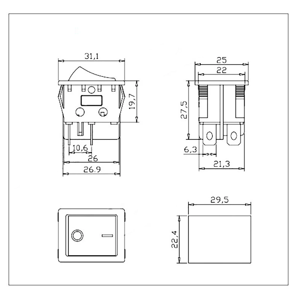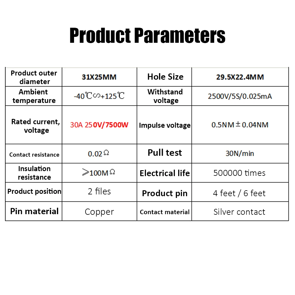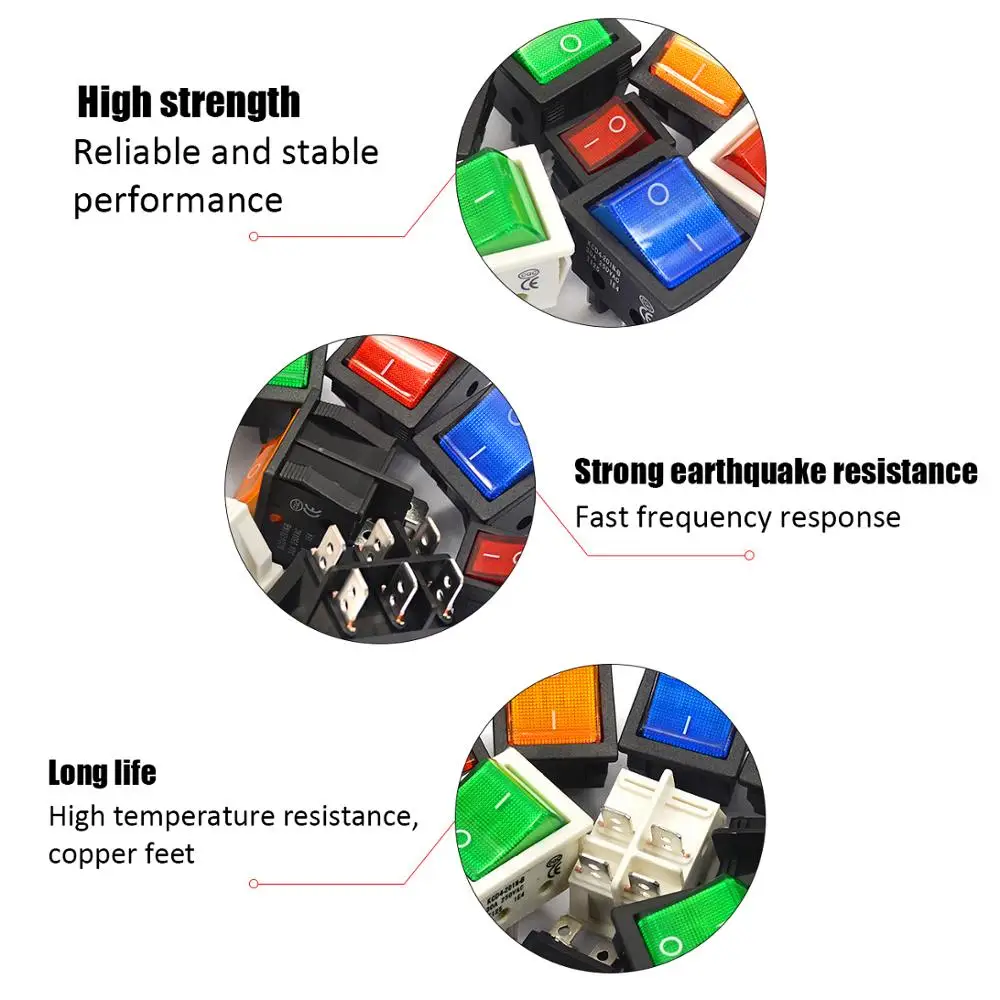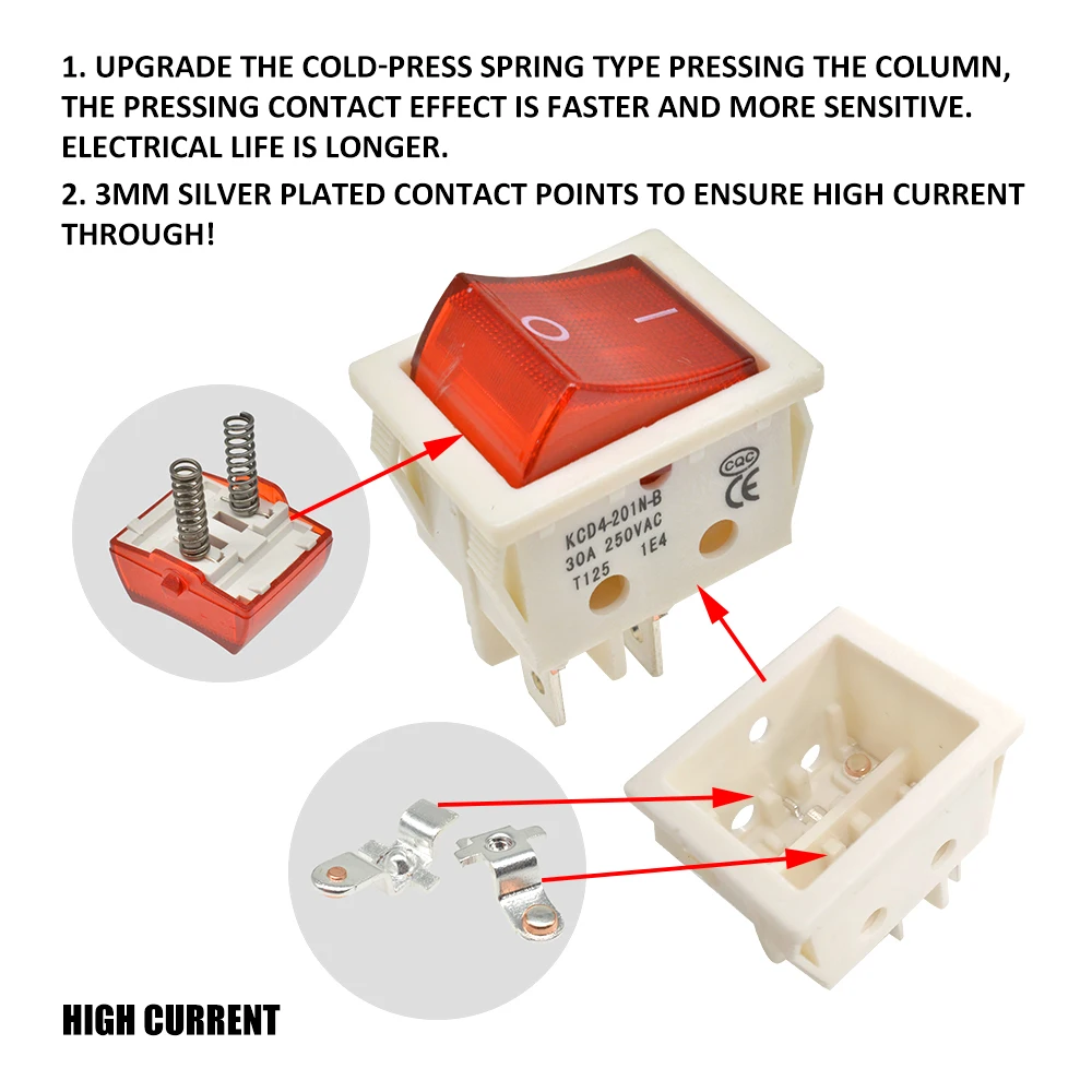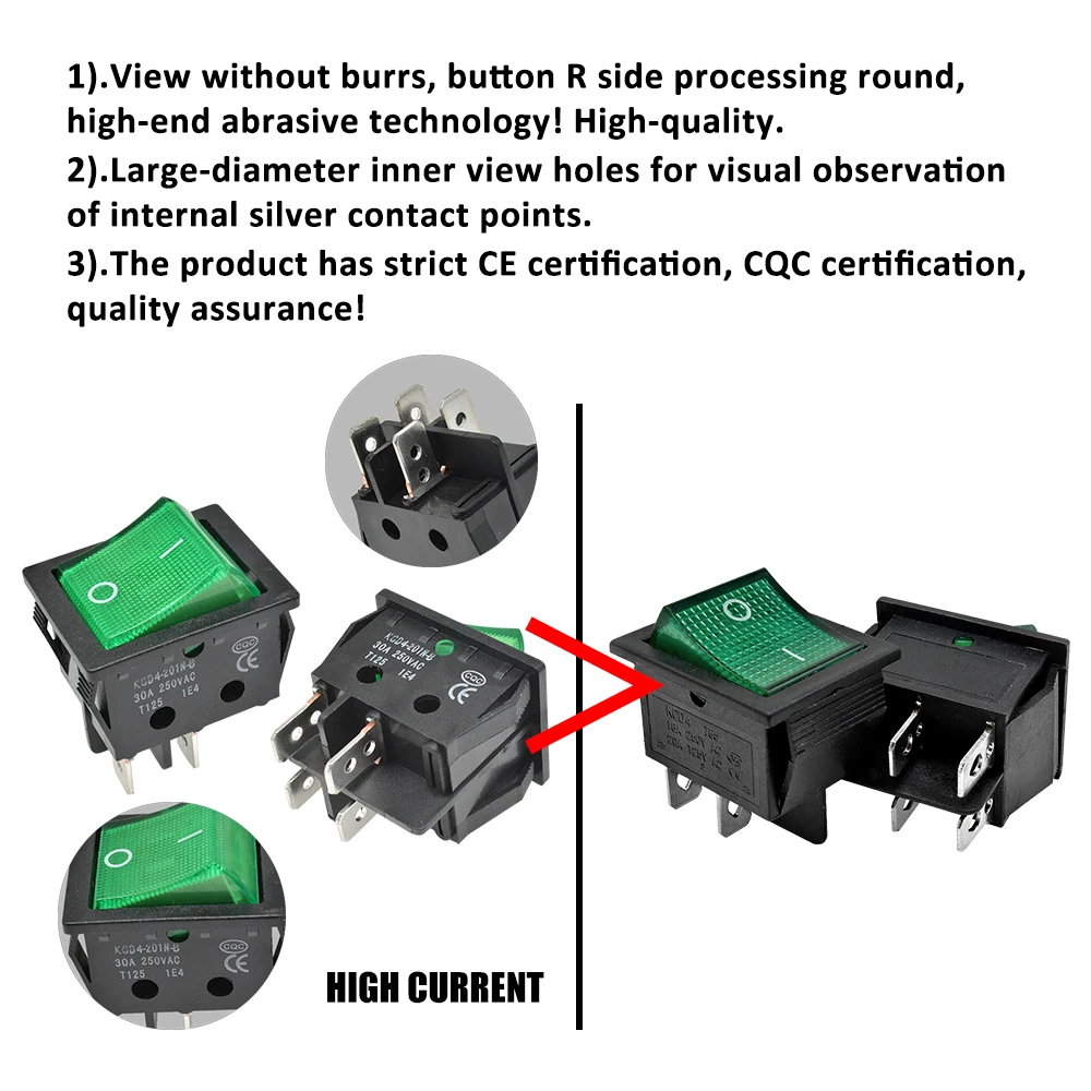 Кнопочный выключатель KCD4 из стерлингового серебра, 30 А, 250 В, 46 контактов, 30 А250 В, 25 х31 мм