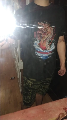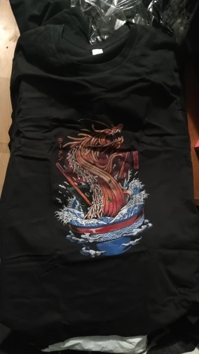 Очень быстро пришло, доставили прям домой. Футболка нормальная, знала и так что печать не супер качественная, но отвечает тому что заказывала. Рисунок прикольный. На свой размер 118 см в груди брала 3xl то что надо, широкая как и хотела