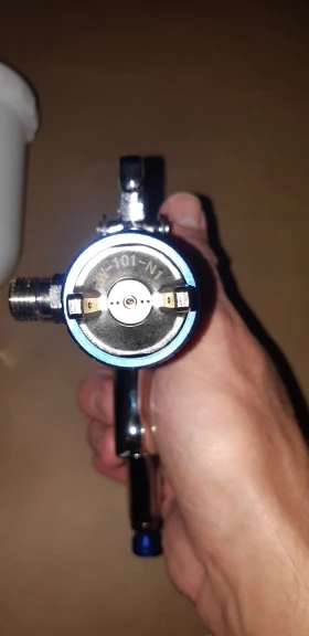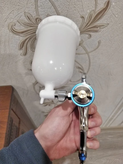 Заказывал пистолет, влагоотделитель и регулятор давления, пистолет заказал с доставкой из России остальное с Китая. Пришло все разом из России за 3 дня. Регулятор давления пришлось перематывать весь фумкой, свистел, остальное все в идеале. Брал специально с поворотным бачком чтоб в труднодоступных местах заливать, сегодня испытал на базе, распыл шикарный, равномерный, достаточно широкий. Дюзам1,3 Н4. Мне все понравилось. Рекомендую. Бачок с базой крутил, без фанатизма, ничего не потекло.