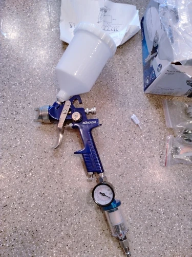 конченый краскопульт. факел не выставить нормальный, настроечная крутила прокручиватся стала через неделю(резьба сорвалась), краска от 646 отваливается с корпуса, но краем стало то что во время покраска краска от краскопультапульта, синяя, начала вылетать из дюзы, во время окраса