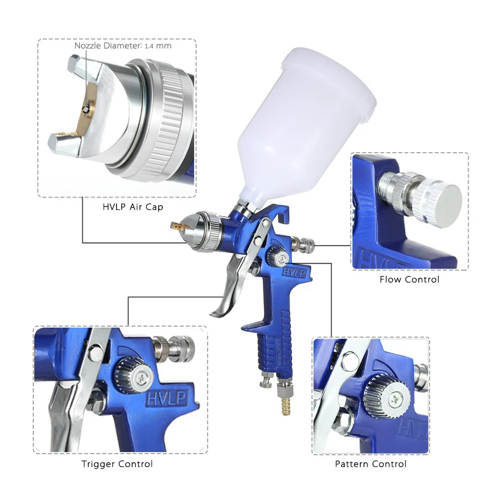 1,4 мм 1,7 мм Профессиональный HVLP распылитель воздуха распылитель краски 600 мл гравитационный питательный Аэрограф Комплект для автомобильной мебели инструмент для распыления краски краскопульт