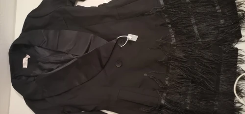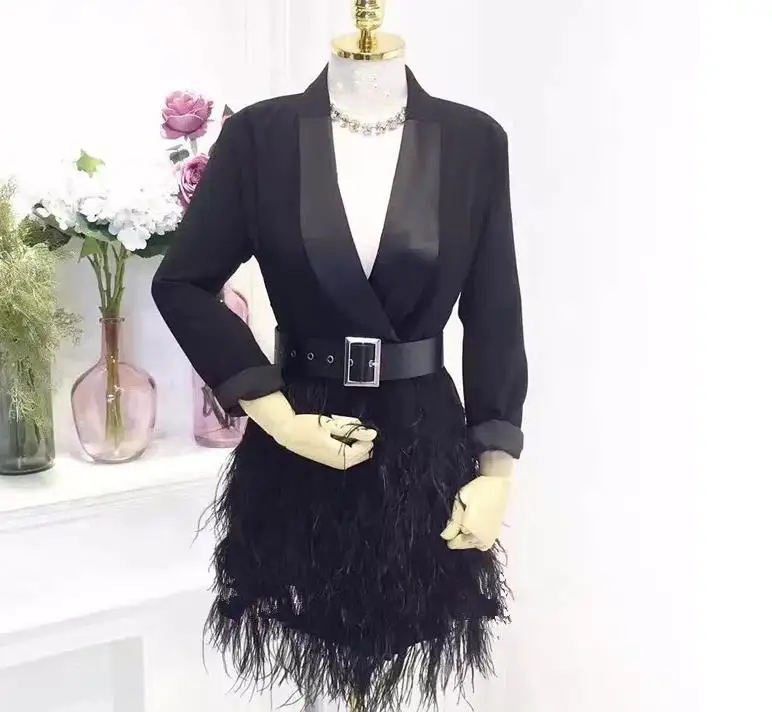 Женский блейзер с перьями, черного цвета, с разрезом, весна-осень