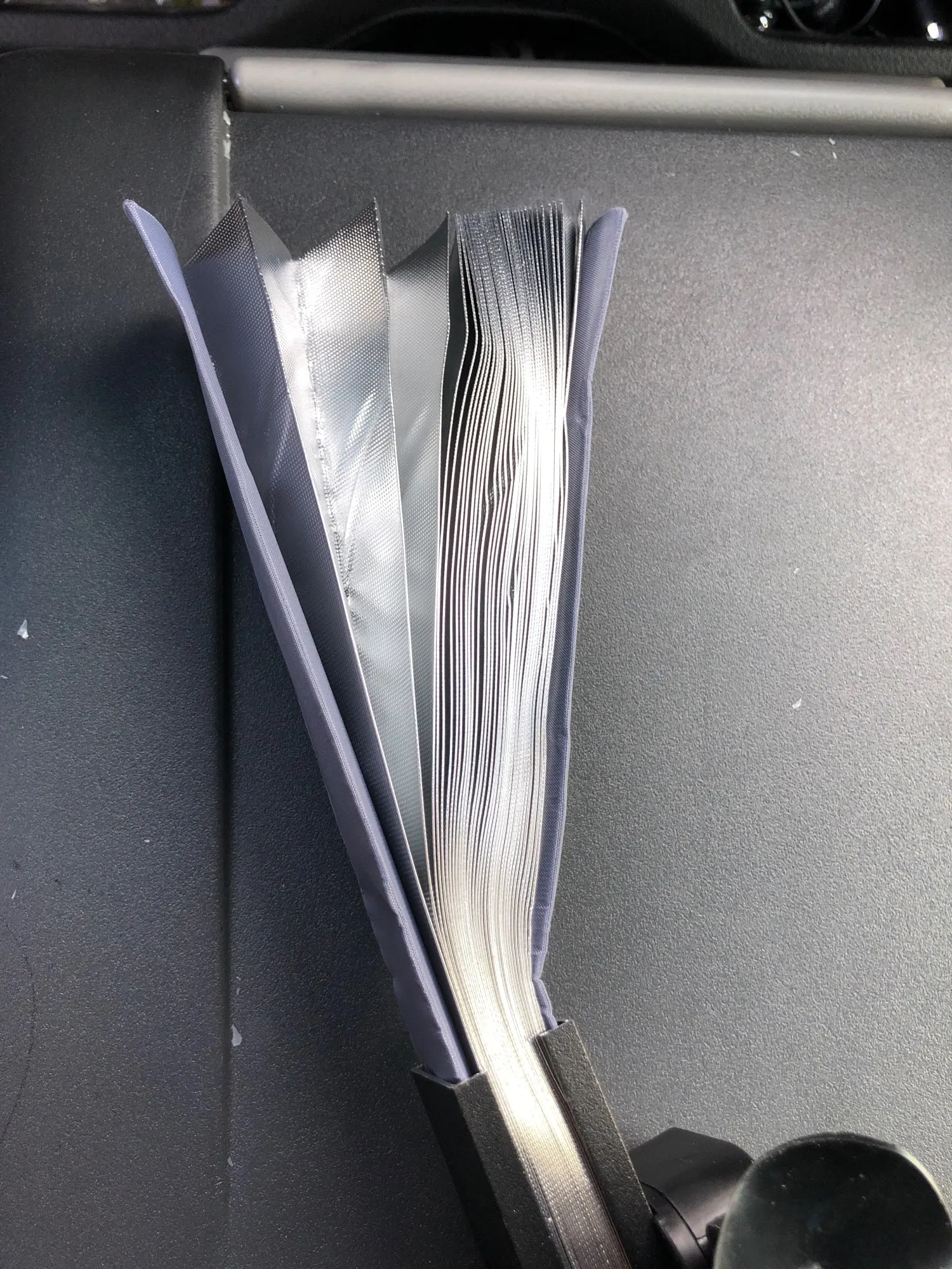 Это действительно хорошо, кажется достаточно крепким. Я пользовался в течение нескольких дней, и я боился, что оттягивание со временем станет свободным, но до сих пор так хорошо. Я вырезал небольшую часть, чтобы соответствовать моему зеркалу заднего вида, и это прекрасно. Единственная жалоба, о которой я могу подумать, заключается в том, что если я надену на присоске весь путь в конце лобового стекла, немного сложно снять солнцезащитный козырек, так как пряжка слишком близко к балке, удерживающей ветровое стекло, и ее трудно положить руку там. Я предполагаю, что небольшой опыт может сделать его проще, без biggie. До тех пор есть небольшой зазор около 4 см между началом солнцезащитного козырька и ветровым лучом, чтобы я мог поместиться в руку. Но в противном случае отлично! Очень доволен этим...