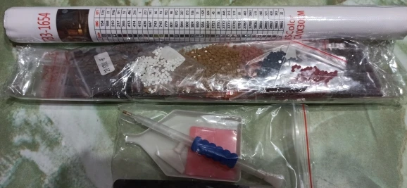 Товар пришел в картонных упаковках, в рулонах. Картинки пока не разворачивали. Алмазы и инструменты вложены. Товар пришел быстро. С продавцом не общалась (не было необходимости). Отзыв дополню позже. Продавцу спасибо.