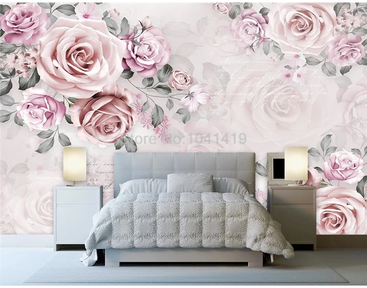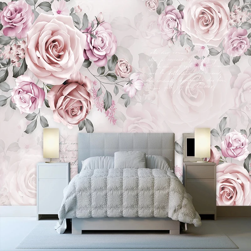Самоклеящиеся настенные 3D обои, ручная роспись, розовая роза, обои для спальни, свадьбы, дома, романтичные, водонепроницаемые, 3D наклейки на стену