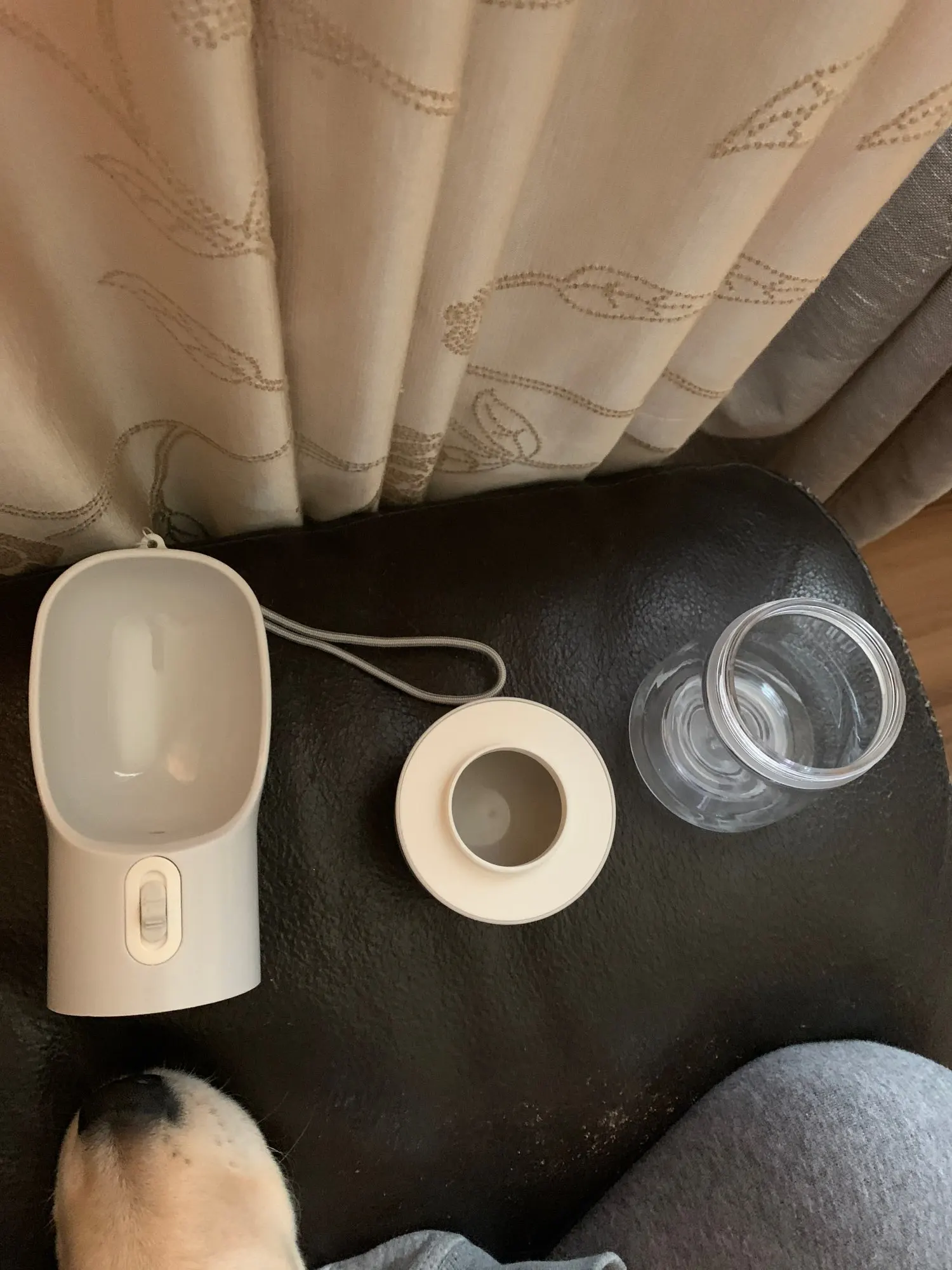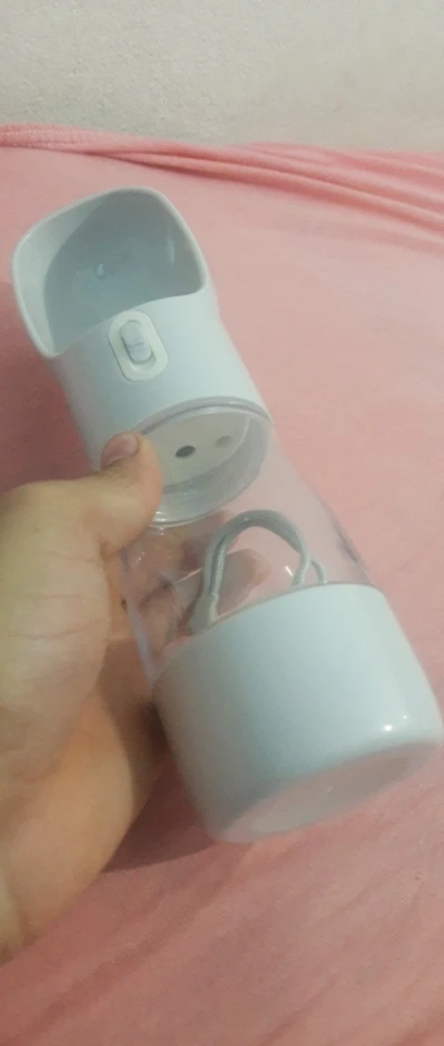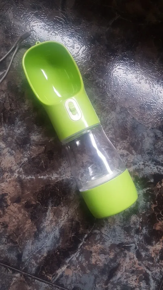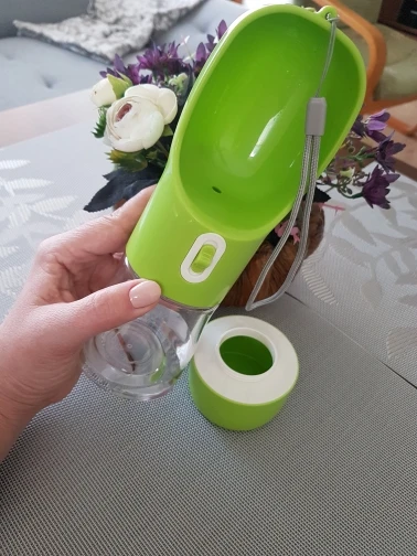 Потрясающая вещь, наша собака пьёт из неё и ест с удовольствием. Есть такие минусы как кнопка, которая иногда " слетает" и вода может немного протечь, аккуратнее носите в рюкзаке и сумке. Так же цвет скорее не белый, а светло- серый, но для нас это даже +) Пришло за неделю до Подмосковья! Спасибо)