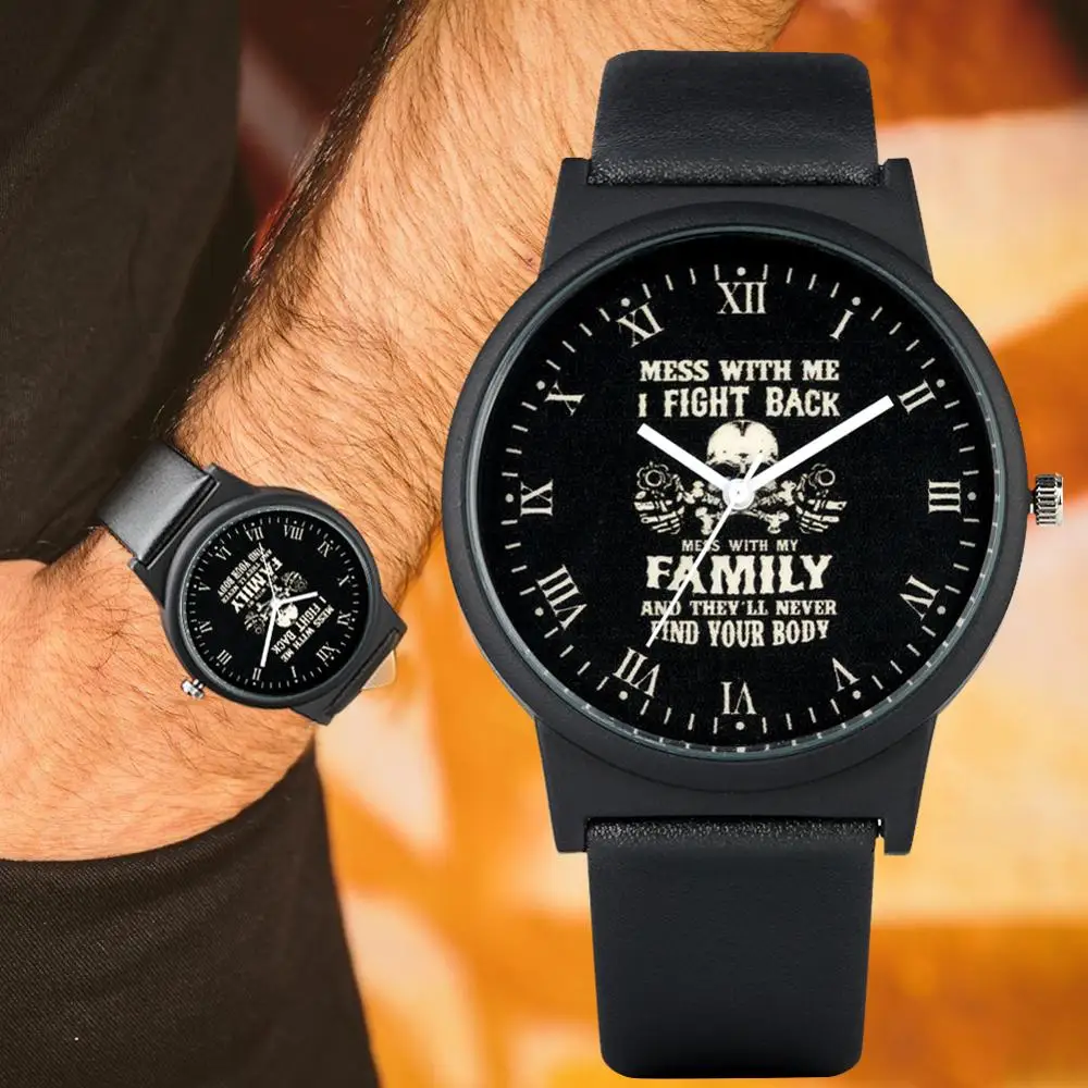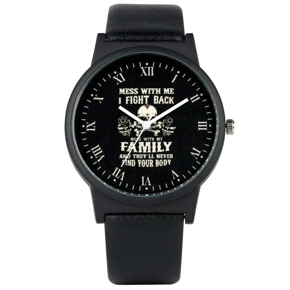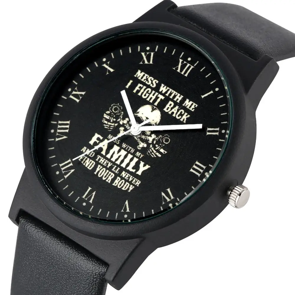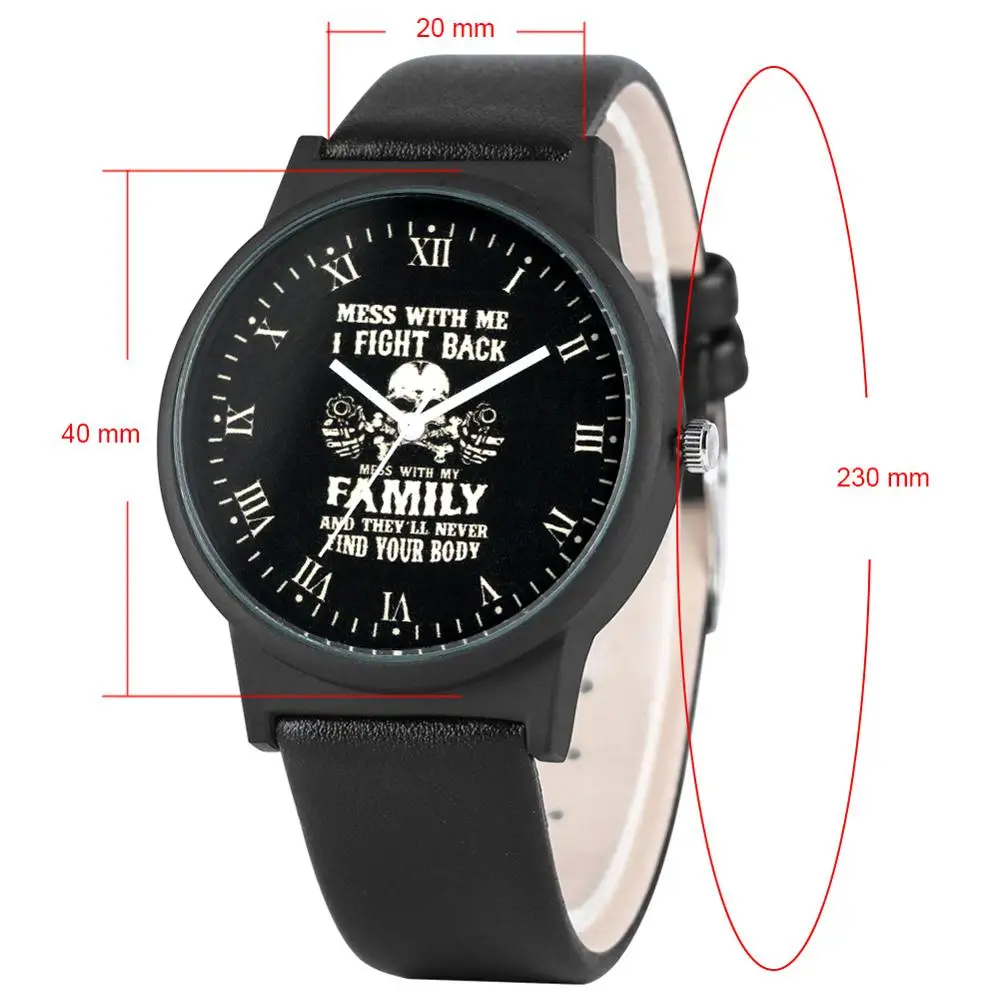 Часы наручные мужские кварцевые с логотипом Family, модные классические, с черным кожаным ремешком и римскими цифрами