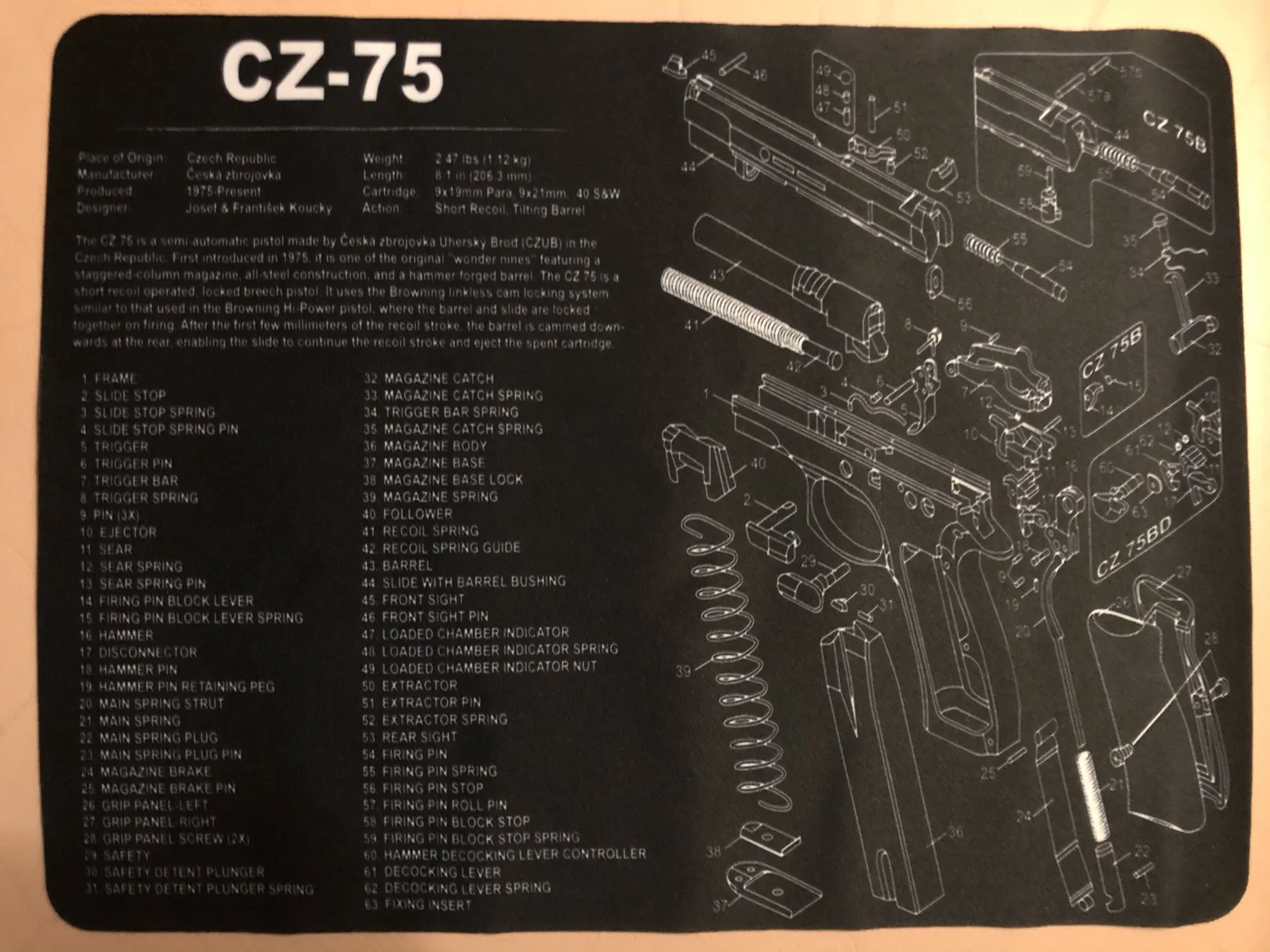 Набор резиновых ковриков для чистки пистолета CZ 75 Gen4 Glock, схема деталей и инструкция, коврик для мыши Walther PPQ HK P2000 SIG SAUER p365