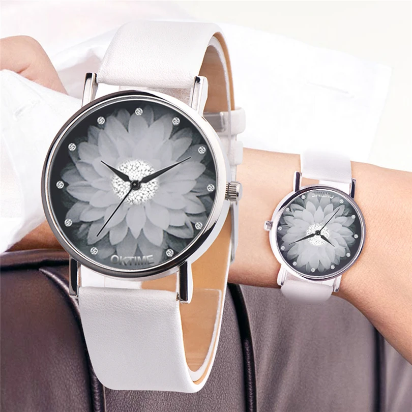 OKTIME женские повседневные кожаные аналоговые кварцевые часы с цветком