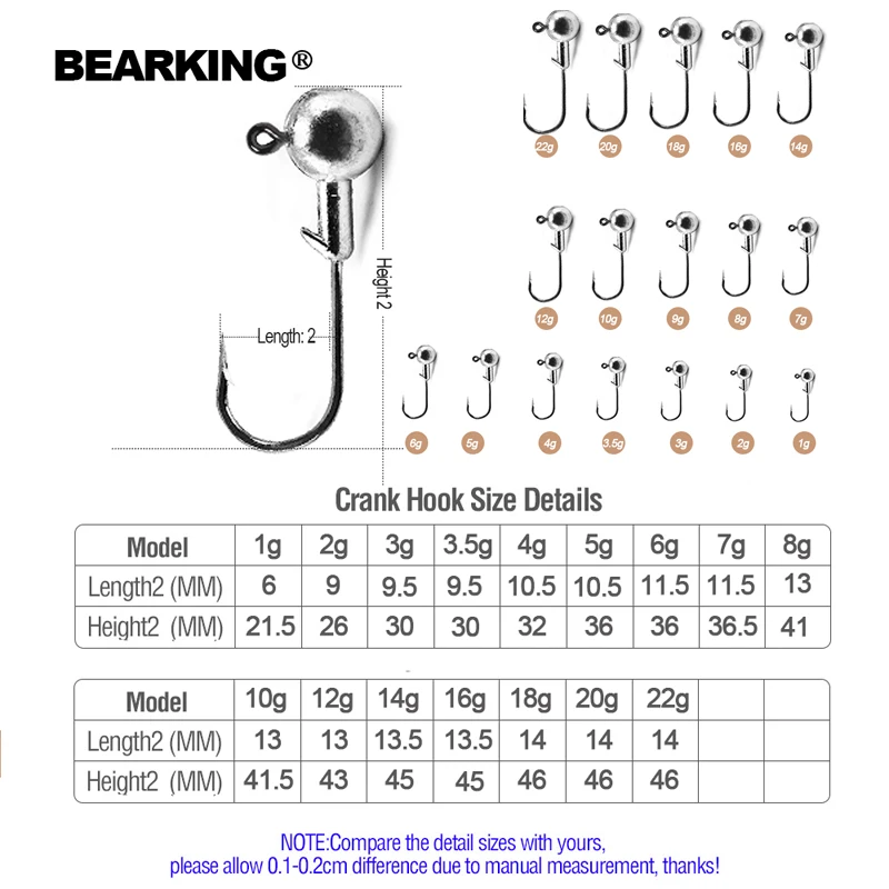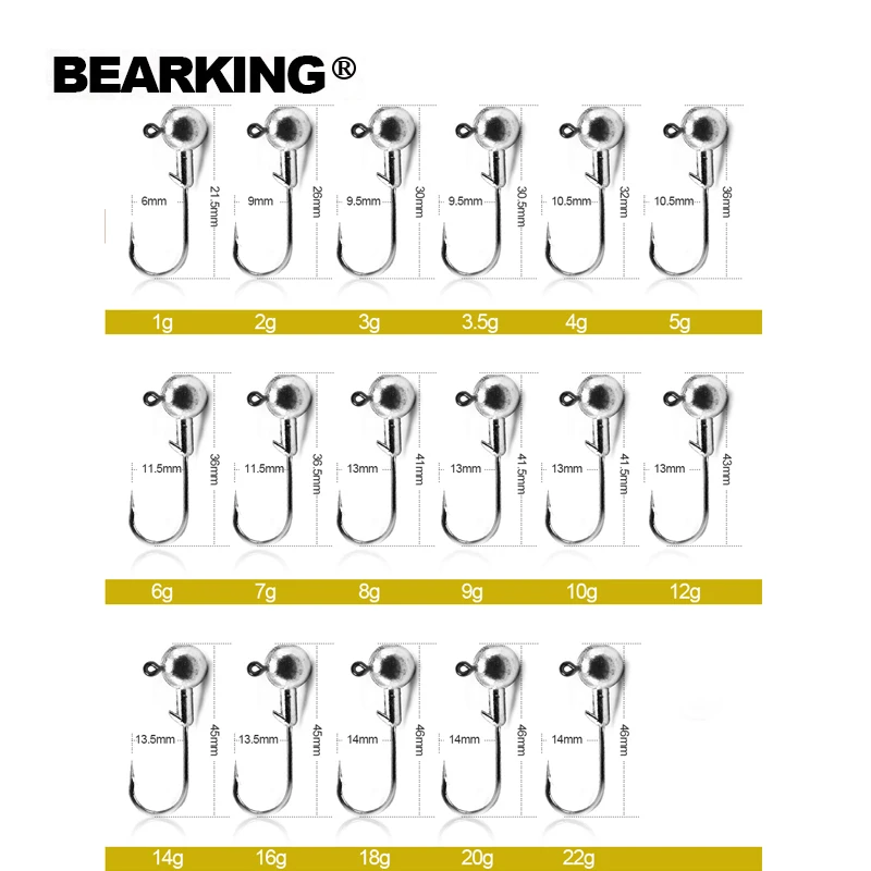 BEARKING 10 шт. 1 г 2 г 3 г 4 г 5g 6 г 7 г 10 г 20 г 22 г кренк джиг головка кренк крючок головка джиг жесткая Приманка Мягкая искусственная приманка
