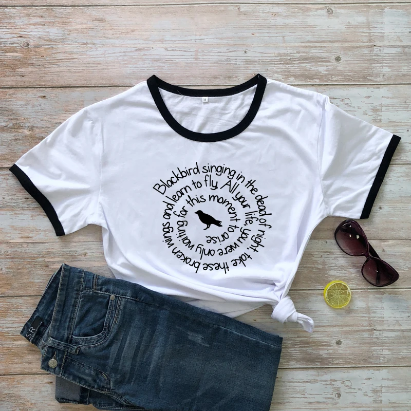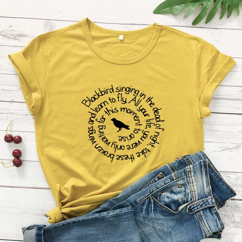 Футболка Blackbird с пением в The Dead Of Night, модная футболка с графическим рисунком хиппи, унисекс, женская Эстетическая футболка Tumblr, летняя футболка, Топ
