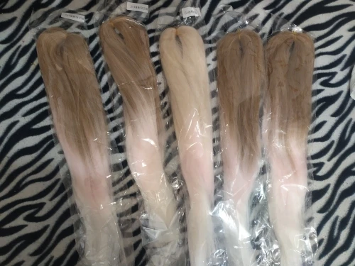 Удлиненный розовый цвет очень красивый. Цвет блонд 613 ниже пепельно и темнее, чем должно быть, я ожидал более четко. Придайте маленьким волосам сравнение с другими, которые я заказал в других магазинах, около 60 gms. Пары не попадают на кончик. Они чаты. Доставка была очень быстрой 17 дней. Я рекомендую продавцу, очень внимательный.