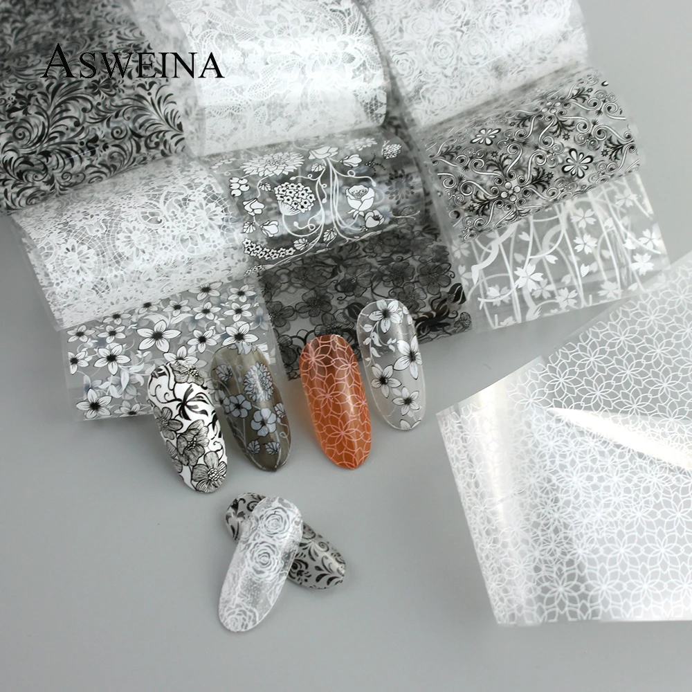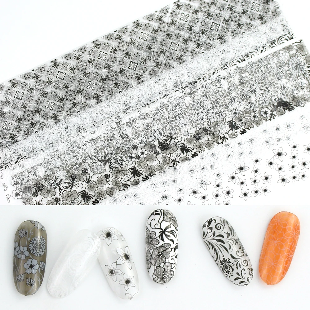Набор фольги для ногтей, 10 шт., голографические Цветочные кружевные переводные наклейки, маникюрные клеи, наклейки для маникюра, декор для ногтей