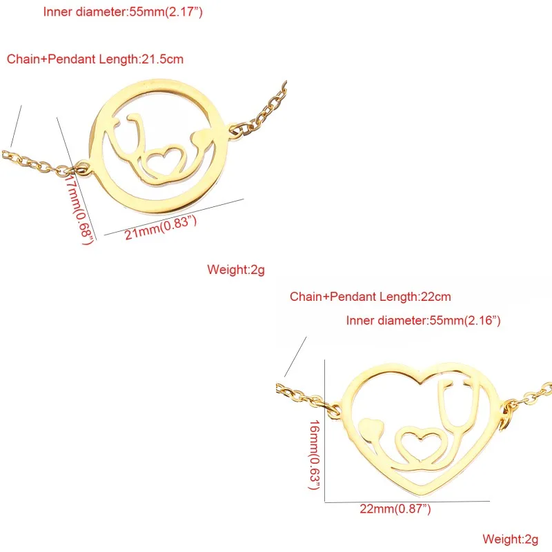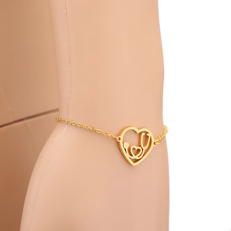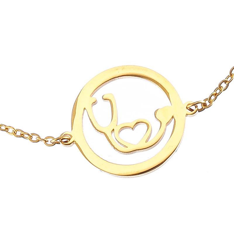 Модный браслет с медицинским стетоскопом, ювелирные изделия из нержавеющей стали для медсестры, врача, Круглый браслет с подвеской в форме сердца, Женская цепочка золотого цвета
