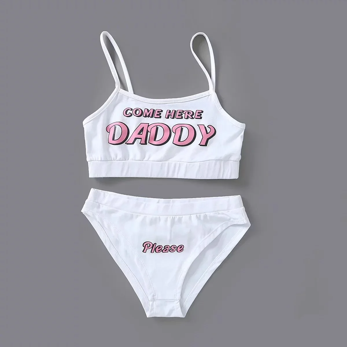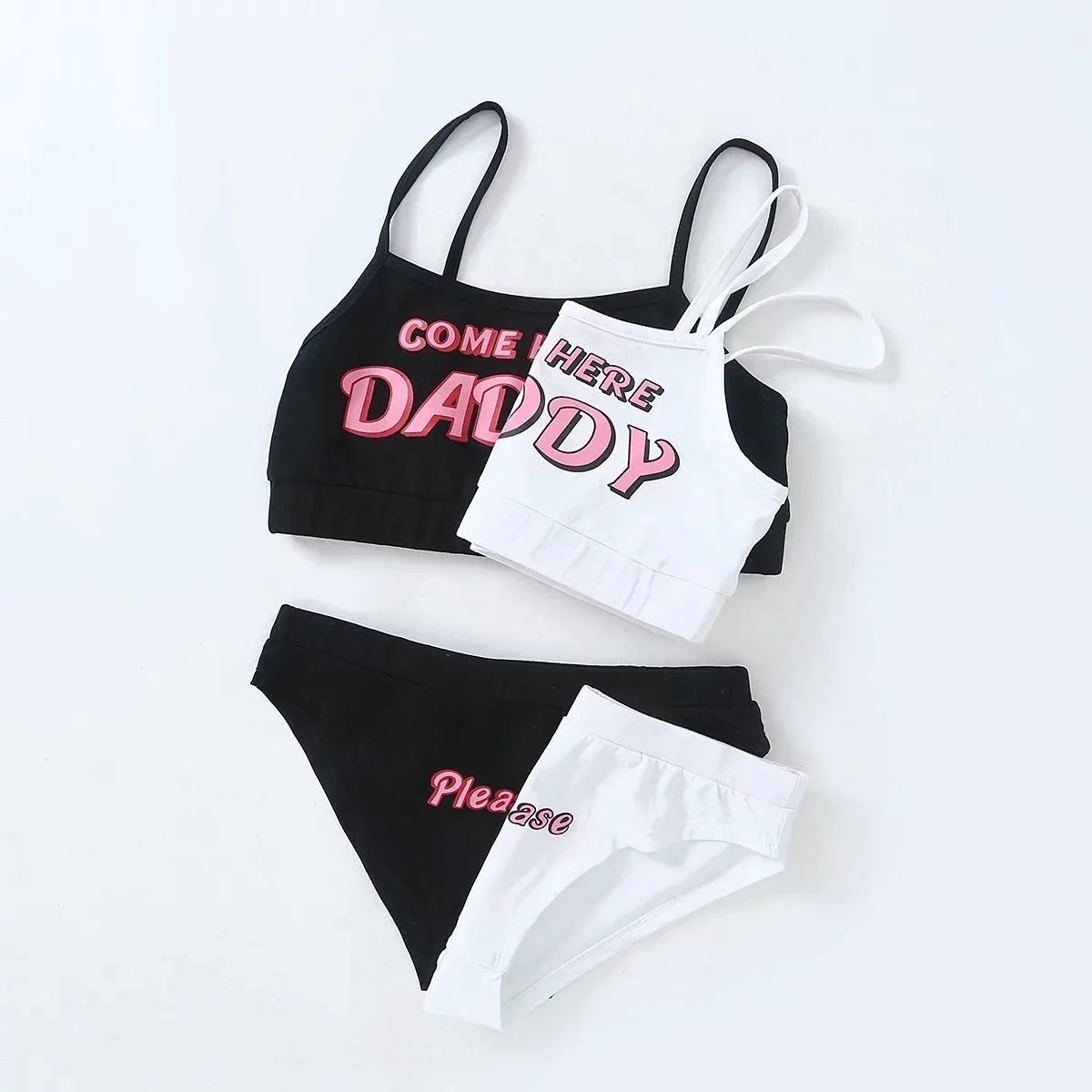 Комплект из двух предметов, майка с надписью COME HERE DADDY, сексуальное летнее укороченное бикини без рукавов в стиле Харадзюку