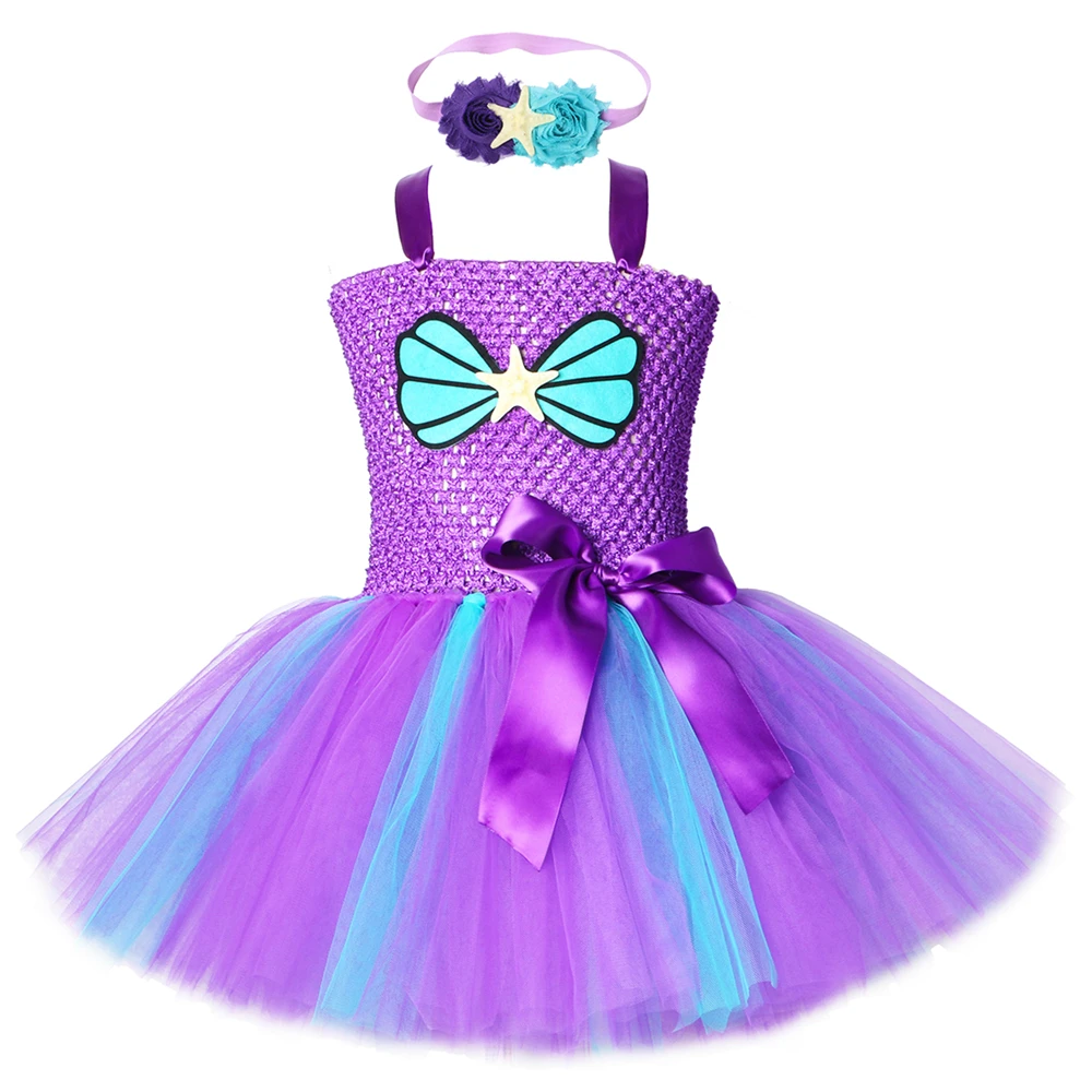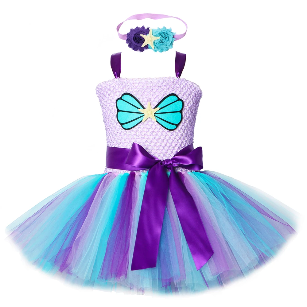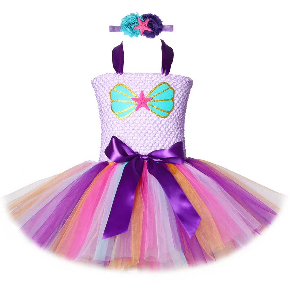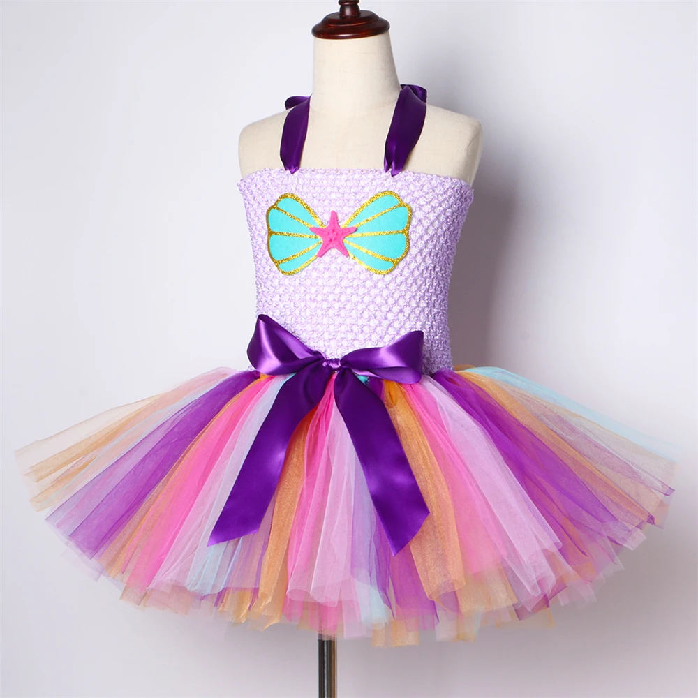 Маленькое женское платье, украшенное морской тематикой, платье на день рождения для девочек, наряд с морскими звездами и ракушками, необычное детское платье-русалка, костюм принцессы