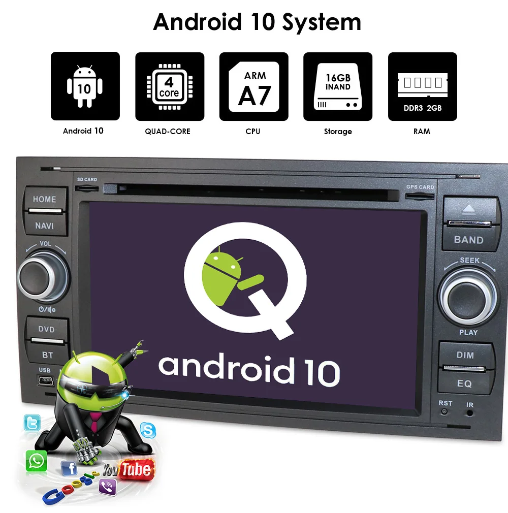 Android 10 четырехъядерный двойной 2 Din автомобильный DVD GPS навигатор плеер мультимедийный плеер для FordMondeoFocusTransitC-MAXS-MAX