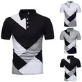 Бренд 2019, модный Индивидуальный Мужской Повседневный тонкий трикотажный рабочий топ с коротким рукавом и пуговицами в стиле пэчворк USD 7,48-8,78/Шт.