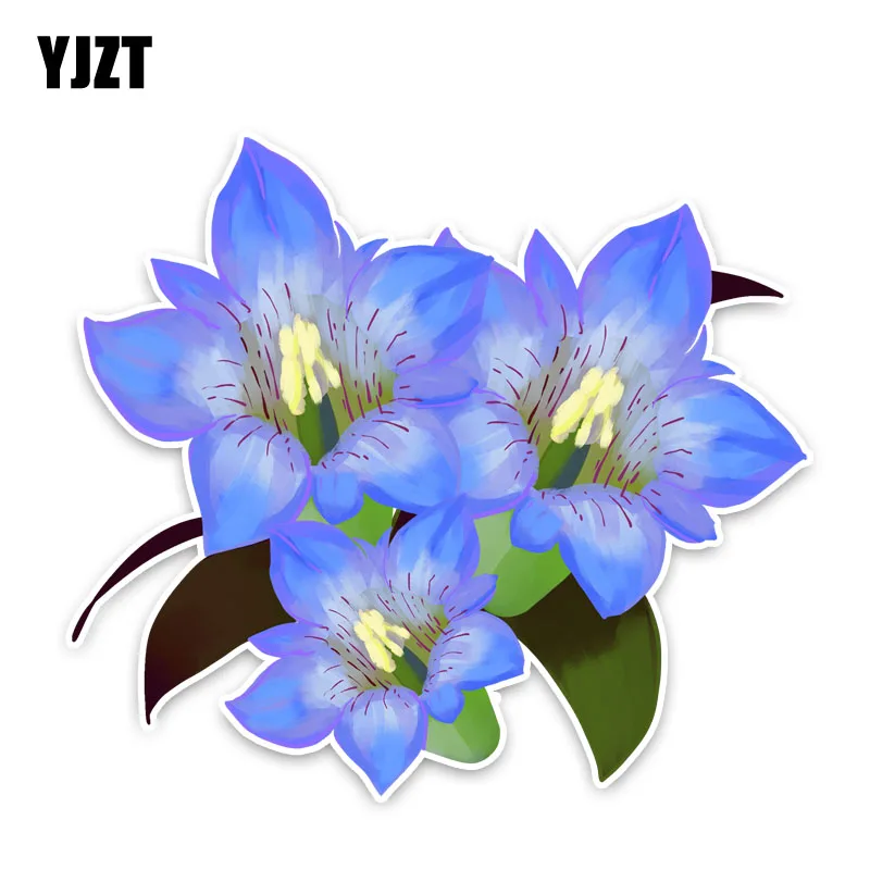 Интересная синяя наклейка YJZT с цветами горечавки, 14*12,5 см, аксессуары для автомобиля, наклейки на бампер 11A1408