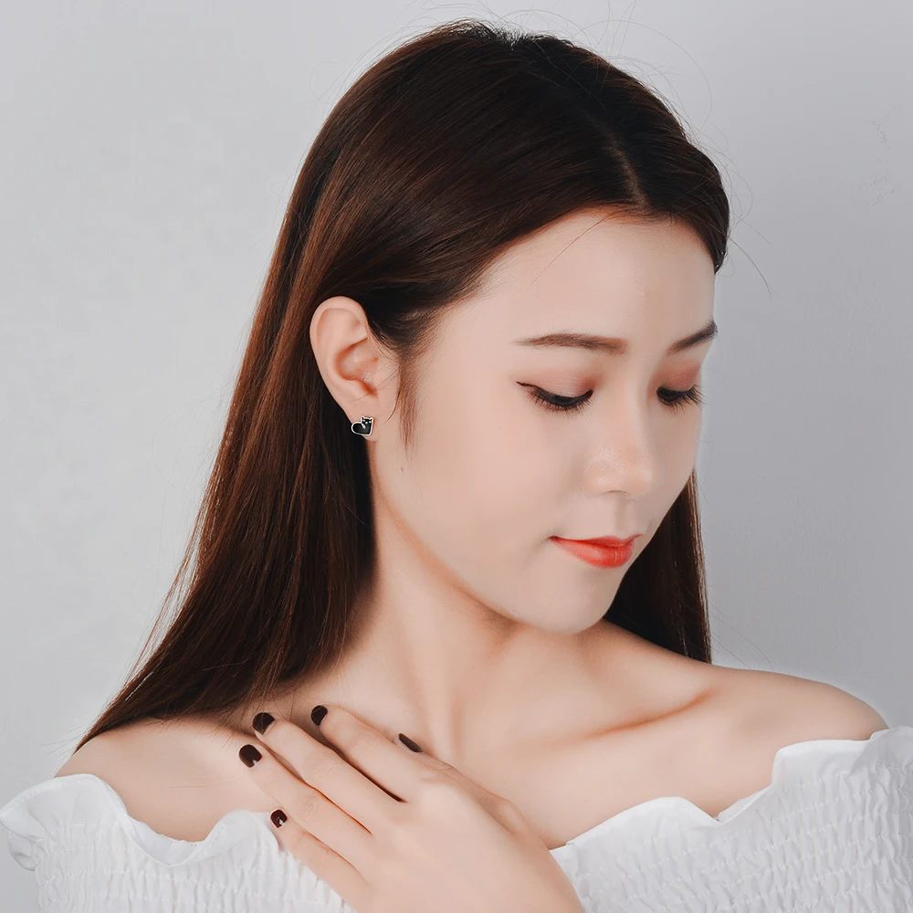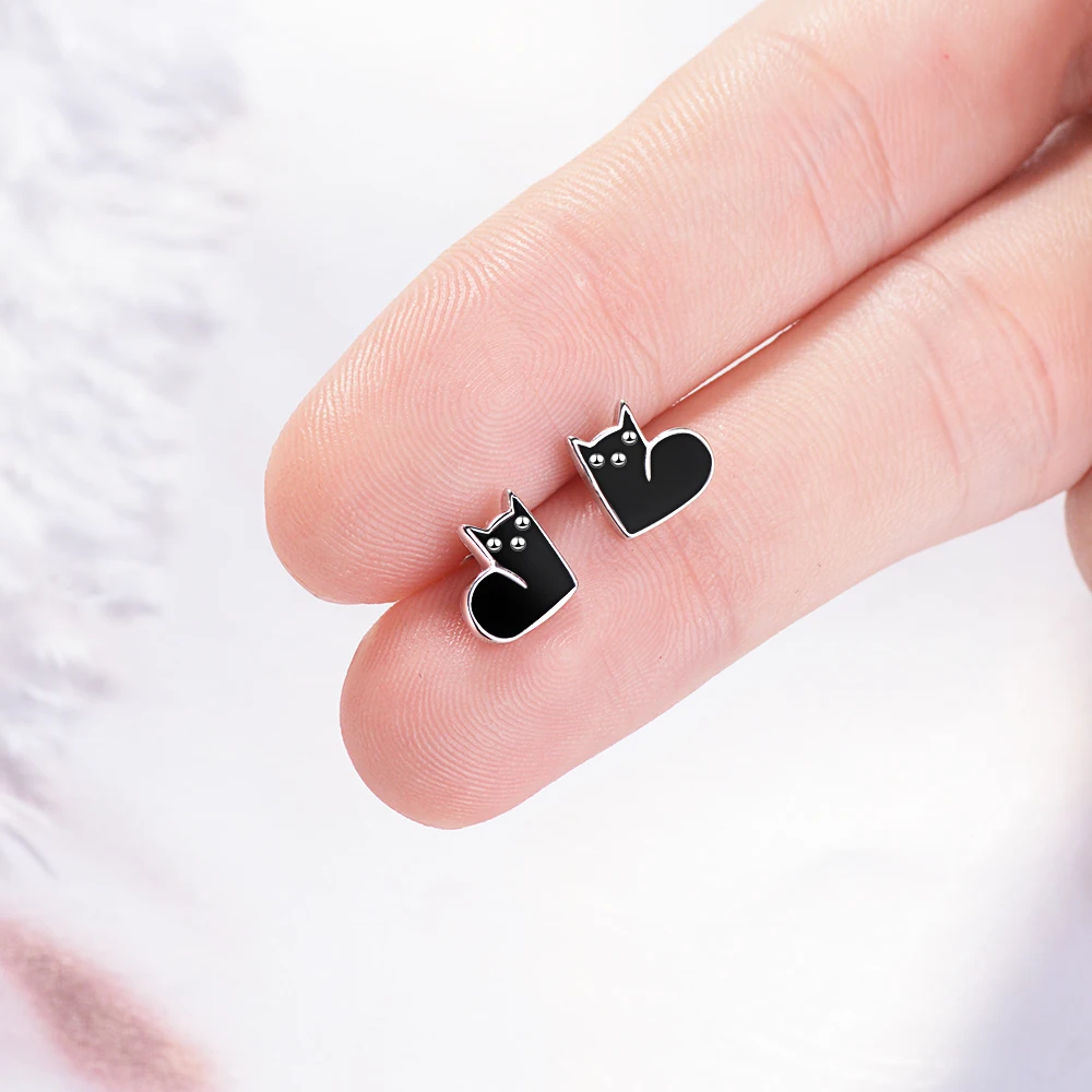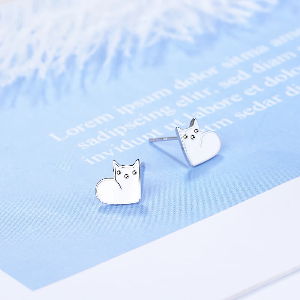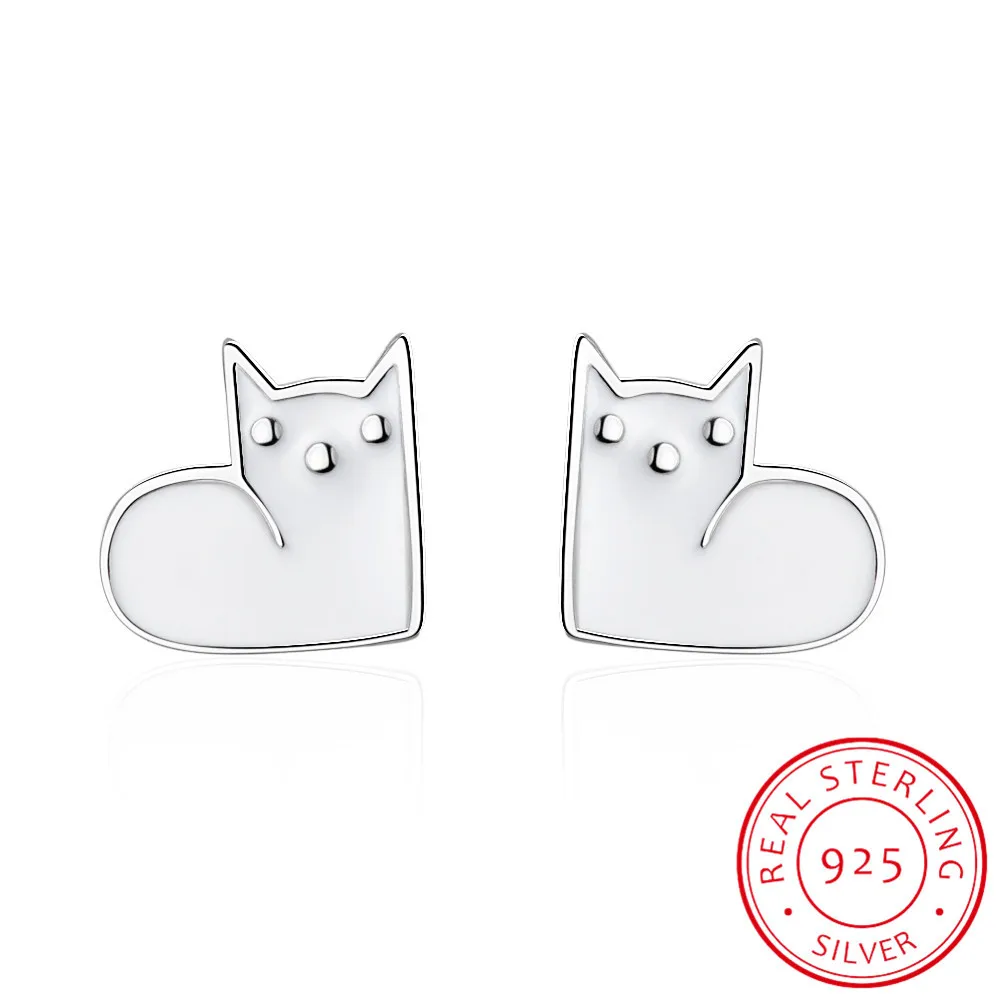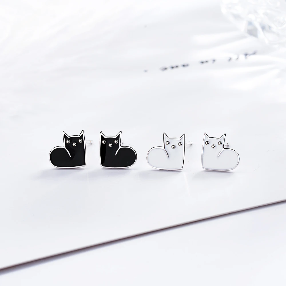 Серьги в виде кошек из серебра 925 пробы с белой черной эмалью