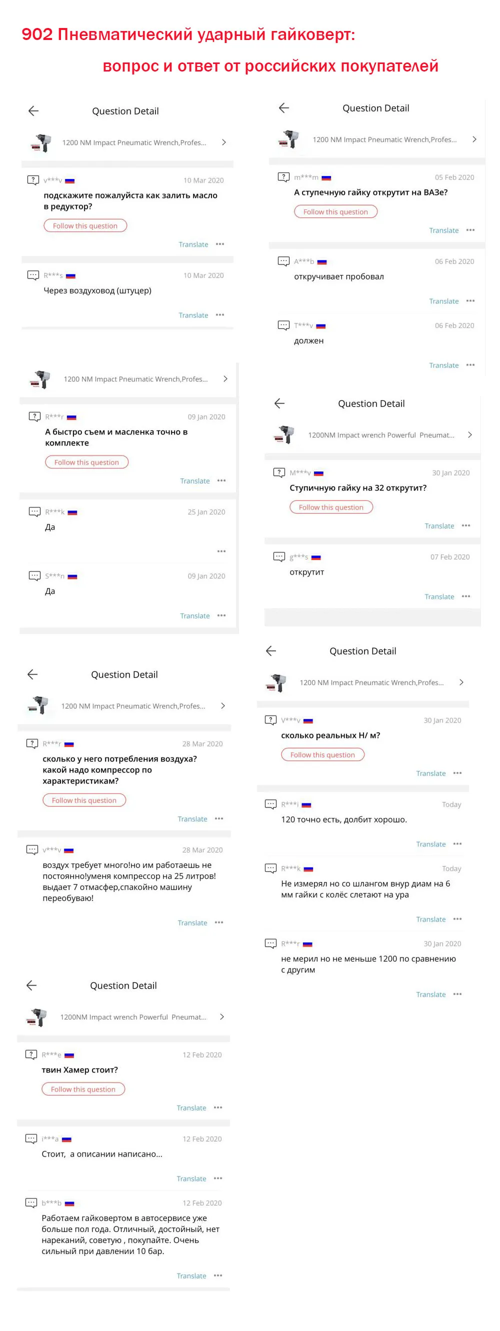 посылку получил в целости.доставка курьером до двери. общением с продавцом доволен. доставка сравнительно быстрей чем из Китая.продавец положил в комплект четыре головки за что спасибо. в работе проверил если компрессор выдает 8 атм.то 1200н.м у него есть. а если меньше 6 атм. то гайковерт конечно дохленький.но в любом случае вещь хорошая.продавцу все пять звезд.