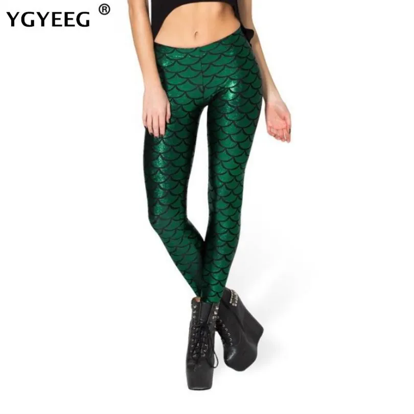 Женские леггинсы YGYEEG, леггинсы в виде рыбьей чешуи, леггинсы для фитнеса с принтом, леггинсы для фитнеса, женские спортивные Леггинсы для тренировок, эластичные брюки