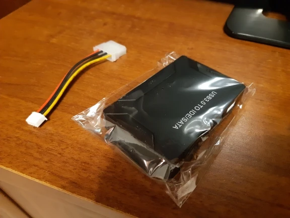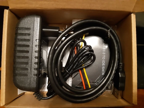 Очень быстрая доставка, прям удивили. 04.11 сделал заказ, 14.11 получил. В комплектации - сам адаптер, шнур питания для диска, кабель usb на usb, кабель для подключения внешнего питания. Подключайте сразу к кабелю питания на системнике. Комплектный кабель бесполезен. Требуемую задачу выполнил на 5.