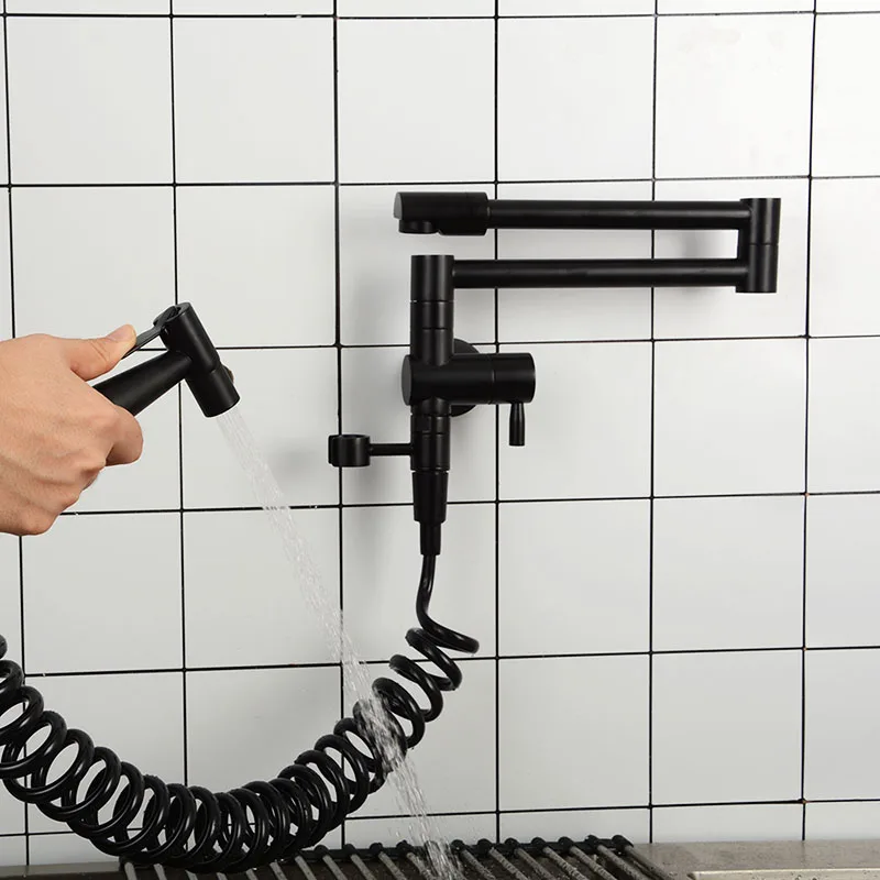 Настенный смеситель для кухни, латунный Смеситель для холодной воды с биде-распылителем, матовый черный, матовый никель и хром