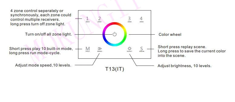 Сенсорная панель 4 зоны RGB DMX512 Master RF пульт дистанционного управления T13(IT) RGB Ring DMX512 панель главного контроллера