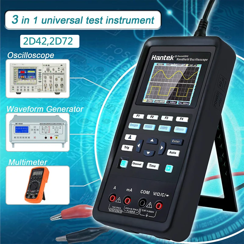 Цифровой осциллограф Hantek 3 в 1 + генератор сигналов + мультиметр 40 МГц 70 МГц 2-канальный Ручной Usb-осциллограф