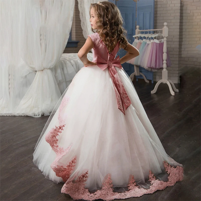 Детское платье для девочек, кружевное платье принцессы с цветами для первого причастия, элегантная детская Свадебная праздничная одежда, праздничное платье для девочки