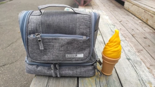 Красивая сумка для унитаза. Сначала думал, что этот слишком маленький, но он подходит больше, чем вы думаете о флаконах и туалетных предметах и макияже. Очень эффективный и практичный е туалетных принадлежностей