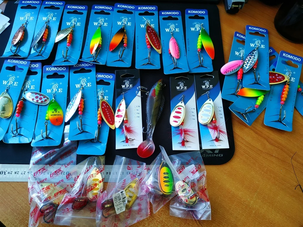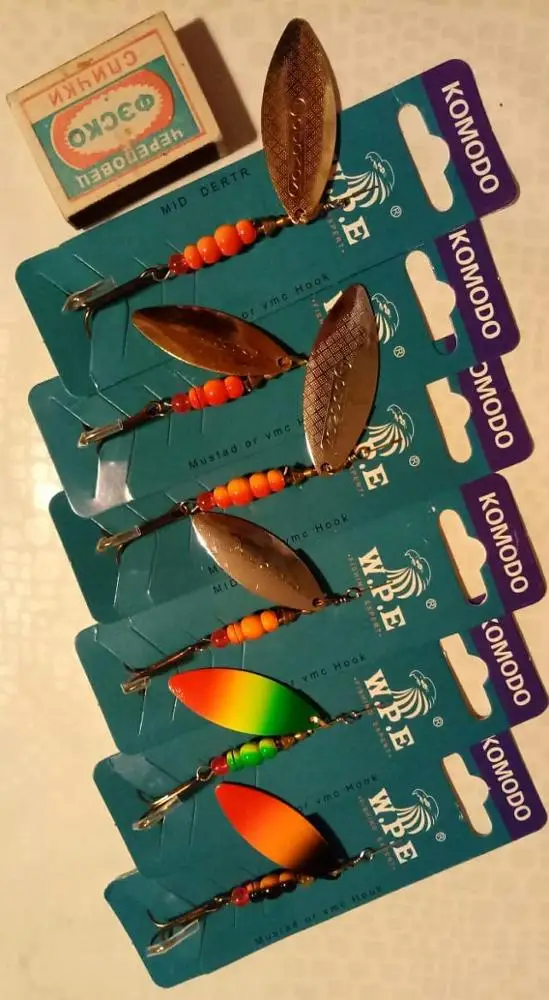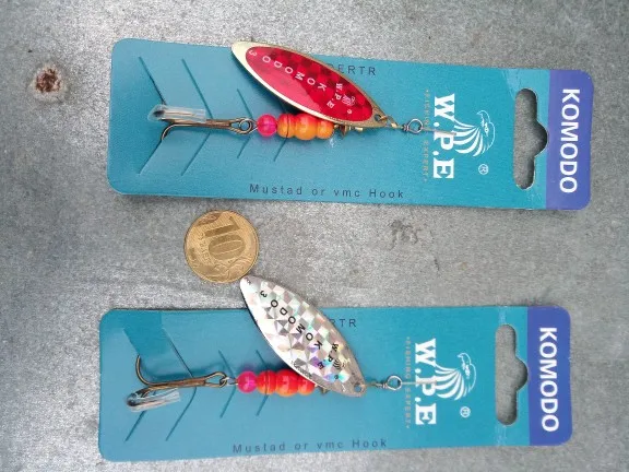 Продавец отправил быстро. Но доставка месяц. Положили мандулу в подарок. Вертушки 17 грамм. Лепесток качественный. Крючки большие. Для крупных вертушек самое то, острые. Хомутик на лепестке надо менять очень тонкий. Гнется пальцами.