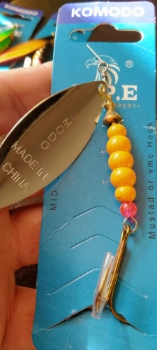 Очень хорошая копия Mepps Aglia Long. Качество спиннинга размера 3 очень близко к оригинальному, и делает свою работу, чтобы ловить рыбу идеально. Может рекомендовать всем, кто теряет много из них из-за вешалок.