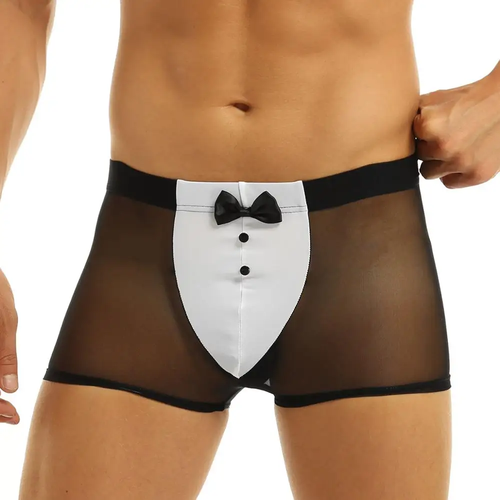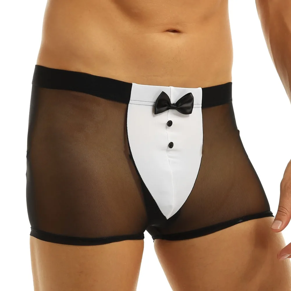 Мужское нижнее белье, сексуальное нижнее белье Tanga, шорты-смокинги для официанта, эротический сексуальный костюм, прозрачные сетчатые трусы-боксеры с заячьими ушками