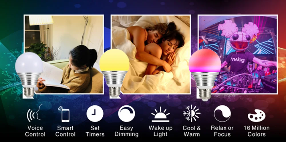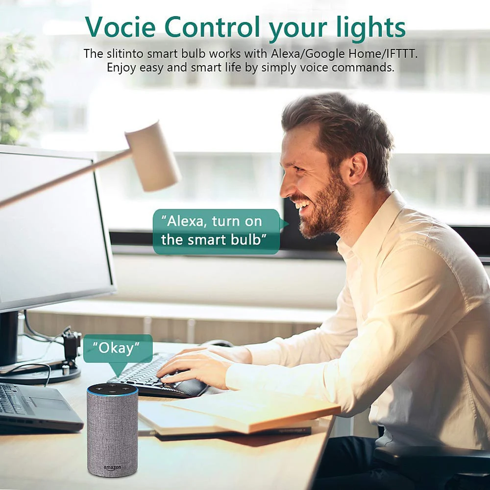 Умная лампа Fcmila может работать с Amazon Alexa и Google Home для голосового управления. Вы можете управлять вашим умным помощником, чтобы изменить цвета с 16 миллионов цветов, доступных, без хлопот вручную, используя ваш мобильный телефон. Все функции с помощью Интеллектуального Голосового ассистента.