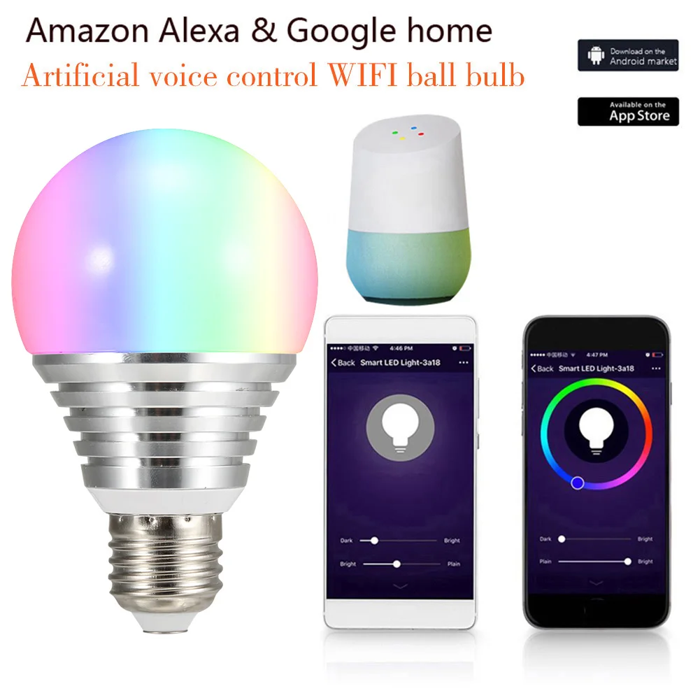 10 Вт Светодиодный светильник с регулируемой яркостью, WIFI, лампа AC 220 В 120 В, умный WIFI светильник, работающий с Google Home LED Bombilla Ampoule E27 E14 B22 E26