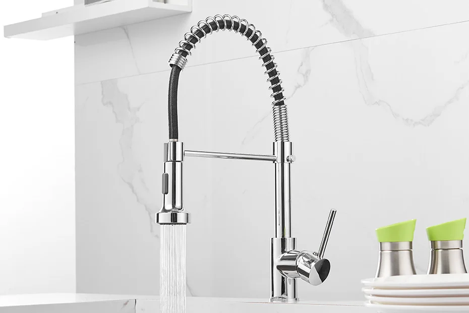 Кухонный кран на раковину 9009, матовый черный смеситель с одним рычагом, выдвижной пружинный носик, холодная и горячая вода