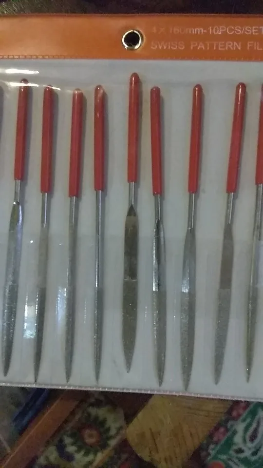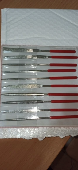 Фигня редкостная! Поверьте на слово или закажите и убедитесь. Напыление (в целях поднятия китайской экономики) сделано не на всю длину рабочей части надфиля, а только наполовину. Само напыление отвратительное и может устроить только тех, кто не видел нормальных надфилей с алмазным напылением. Основа надфиля - очень грубая штамповка из проволочного прутка. Беря в руки квадратный надфиль, ожидаешь, что он будет квадратным, а тут даже слова нет, чтобы передать его форму в сечении даже без напыления, а столь грубое напыление и подавно делает его просто напильником посредственного качества. Не знаю, есть ли на Али нормальные надфили, но конкретно эти -- совсем не то, что ожидаешь от настоящих надфилей с алмазным напылением.