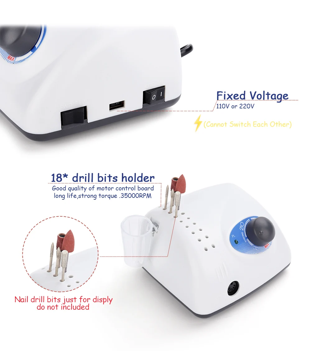 Электрическая дрель для маникюра и педикюра, Мощная пилочка для ногтей, моделирующая насадка, оборудование для дизайна ногтей, нейл-арт, 65 Вт, 210, 105 л, 35 000 обм
