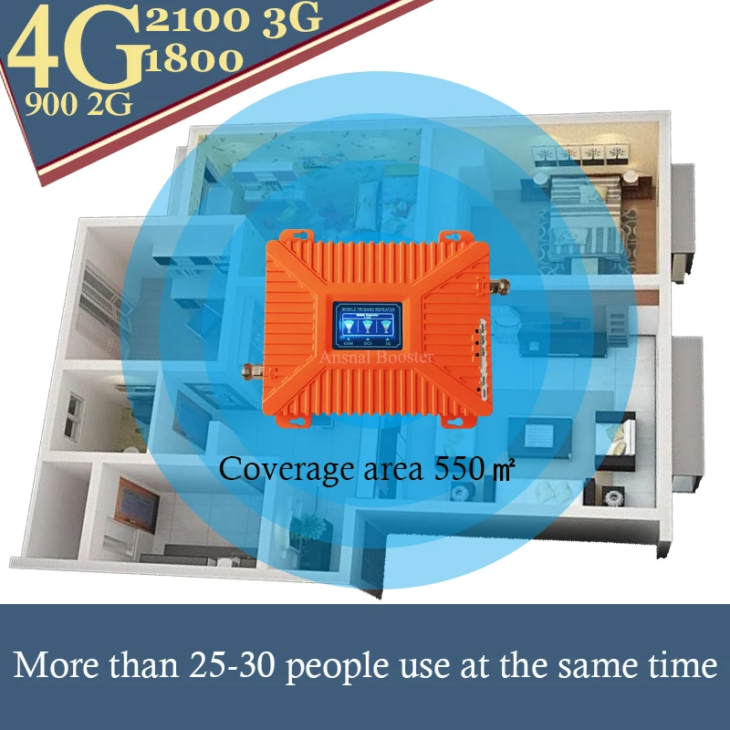 Трехдиапазонный усилитель сигнала 2g 3g 4g 900 1800 2100 GSM WCDMA UMTS LTE ретранслятор сотовой связи 900/1800/2100 МГц усилитель Особенность: 1. Высокий коэффициент усиления: 75 дБ. Покрытие: 550 квадратных метров без шлагбаумов 2. Улучшение 2G GSM 900 МГц, 3G UMTS WCDMA 2100 МГц, 4G DCS LTE 1800 МГц одновременно. 3. Поддержка более 25-30 сотовых телефонов для одновременного использования 4. Уменьшить мощность передачи мобильного телефона 5. Простота установки. В этот ретранслятор входит все необходимое. 6. ЖК-дисплей и светодиодная сигнальная лампа указывают статус сигнала. 7. Подходит для: России, Испании, Франции, Бразилии, Европы, Азии и т. д. 8. Гарантия: 1 год! [Улучшенный голос и данные] Получайте меньшее количество отброшенных вызовов, лучшее качество голоса, более быстрая загрузка и загрузка. Вы можете поделиться своим доступом к качественному голосовому вызову и не беспокоиться о том, что вызов внезапно отключится.